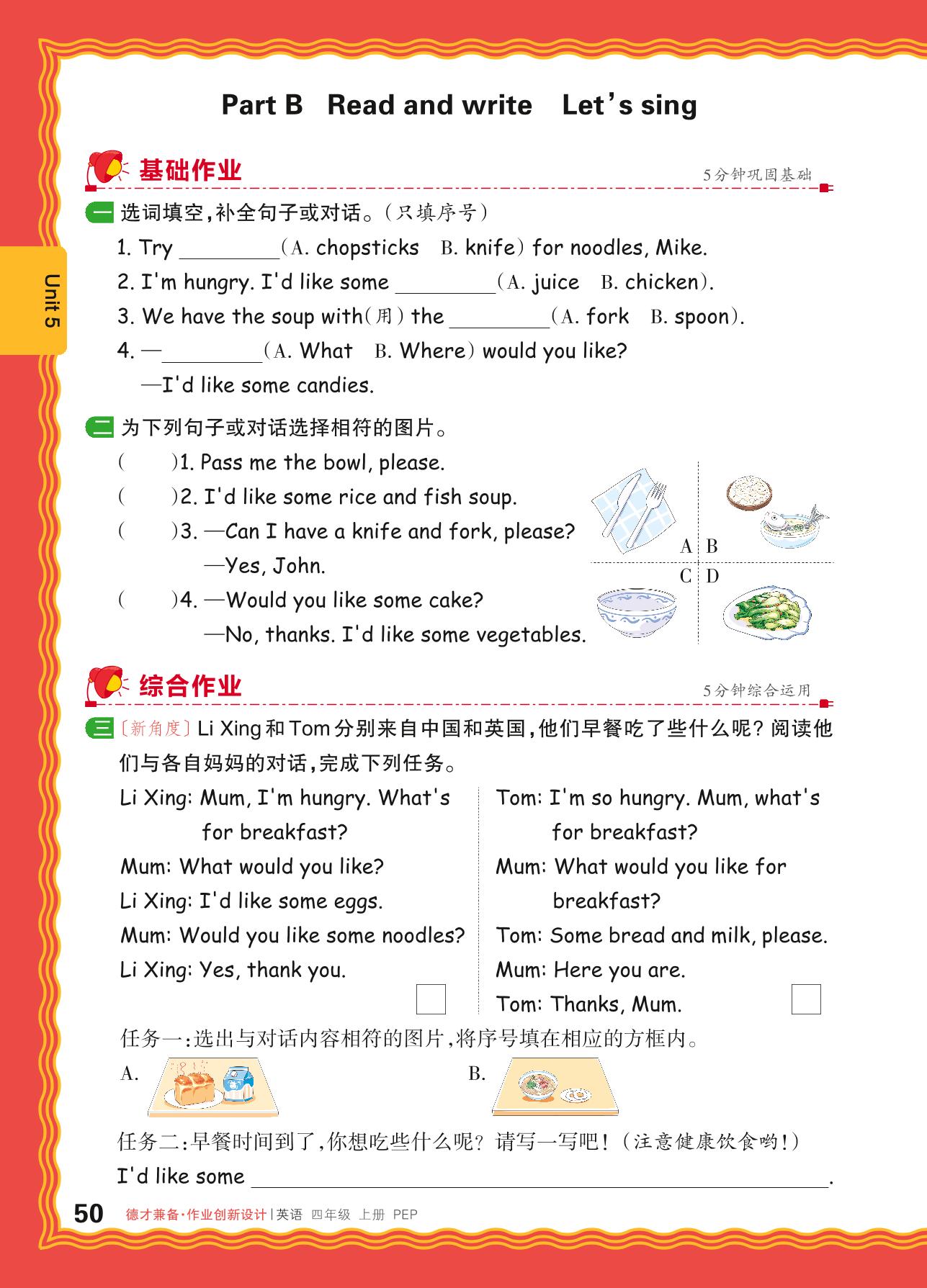 2024秋上册四年级英语人教PEP版(三起始) Unit 5—Part B Read and write Let’s sing