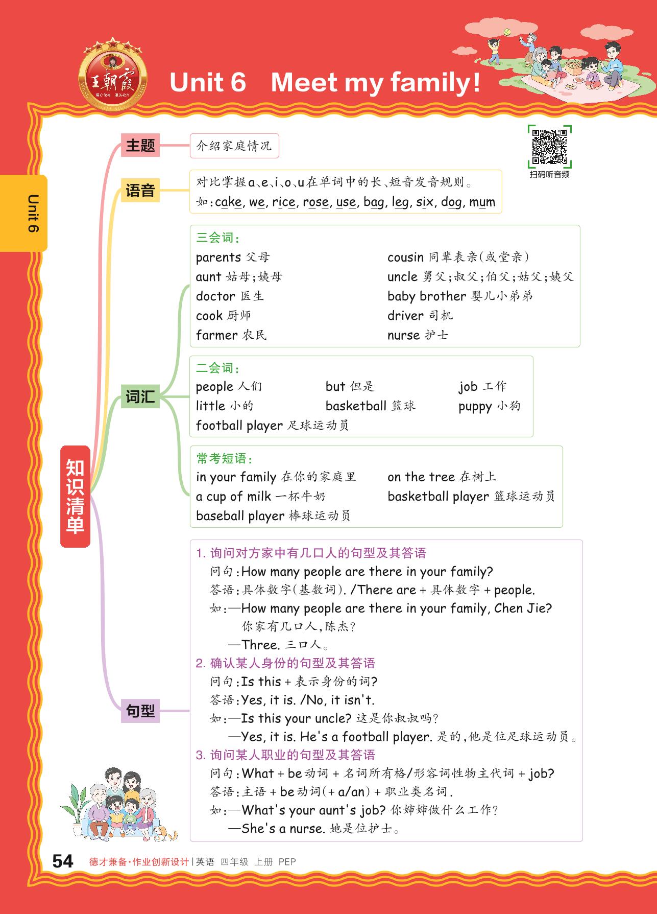2024秋上册四年级英语人教PEP版(三起始) Unit 6 知识清单