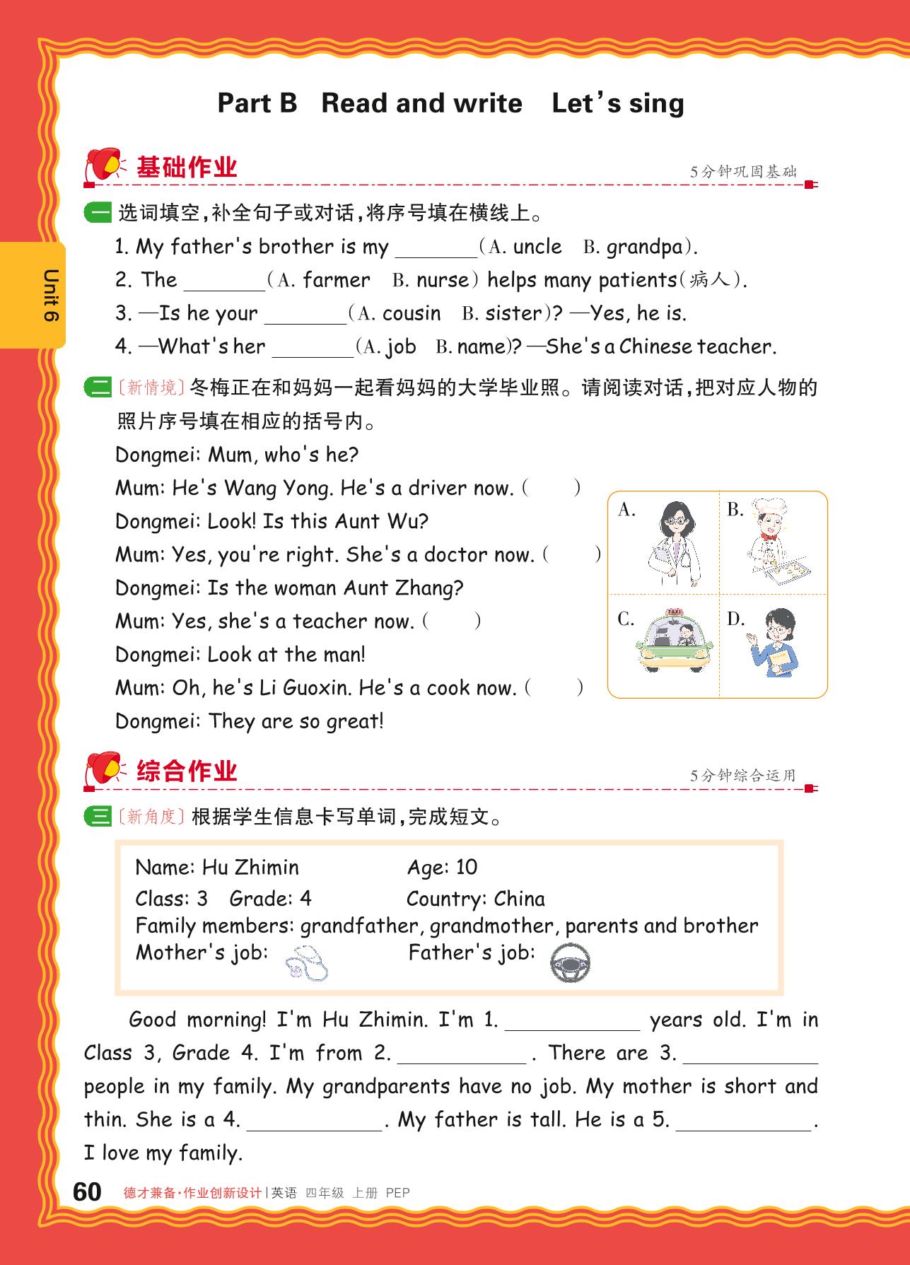 2024秋上册四年级英语人教PEP版(三起始) Unit 6—Part B Read and write Let’s sing