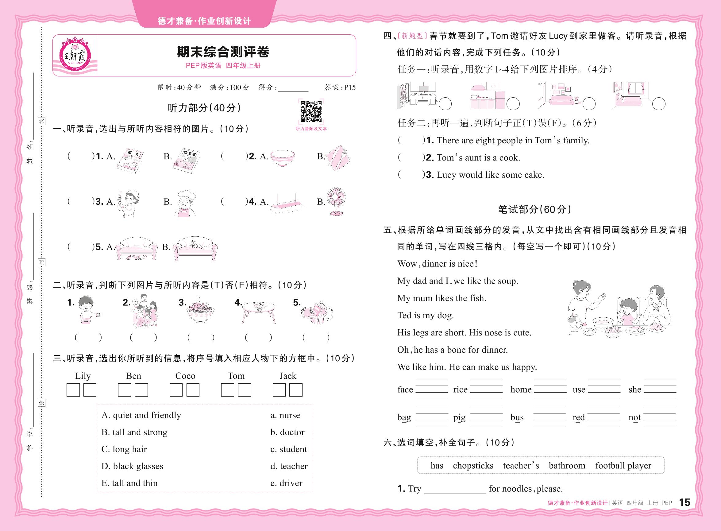 2024秋上册四年级英语人教PEP版(三起始) 期末综合测评卷