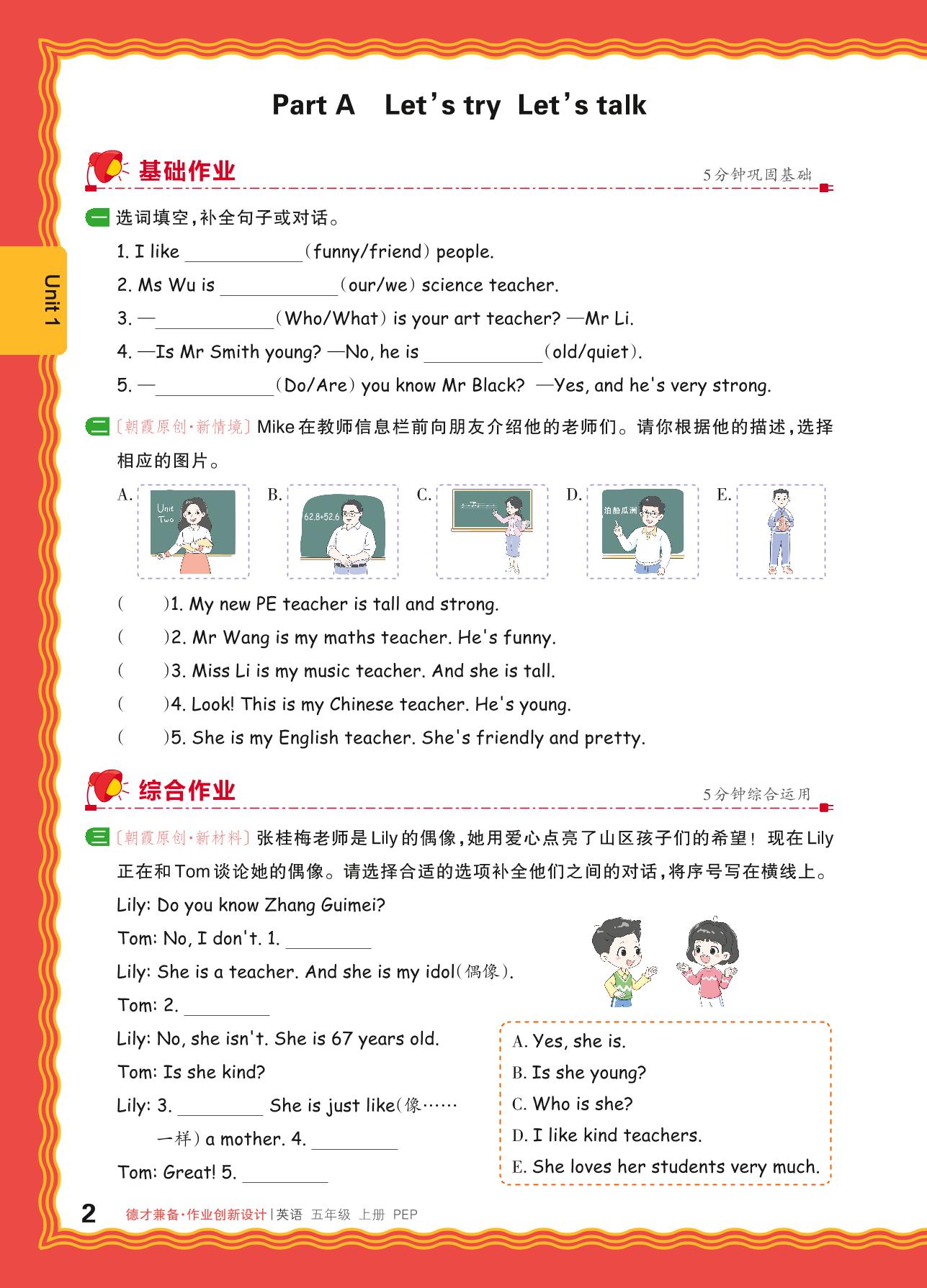 2024秋上册五年级英语人教PEP版(三起始) Unit 1—Part A Let’s try Let’s talk