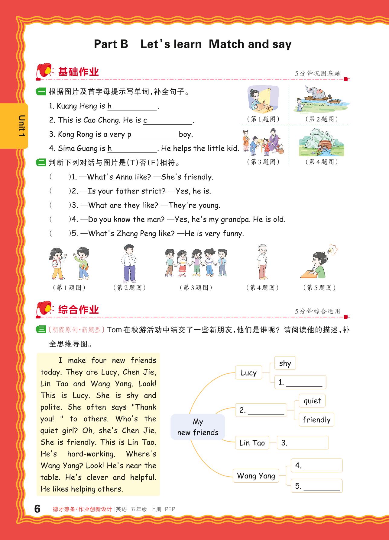 2024秋上册五年级英语人教PEP版(三起始) Unit 1—Part B Let’s learn Match and say