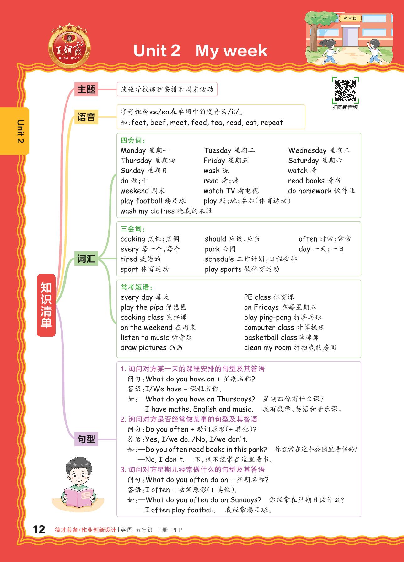 2024秋上册五年级英语人教PEP版(三起始) Unit 2 知识清单