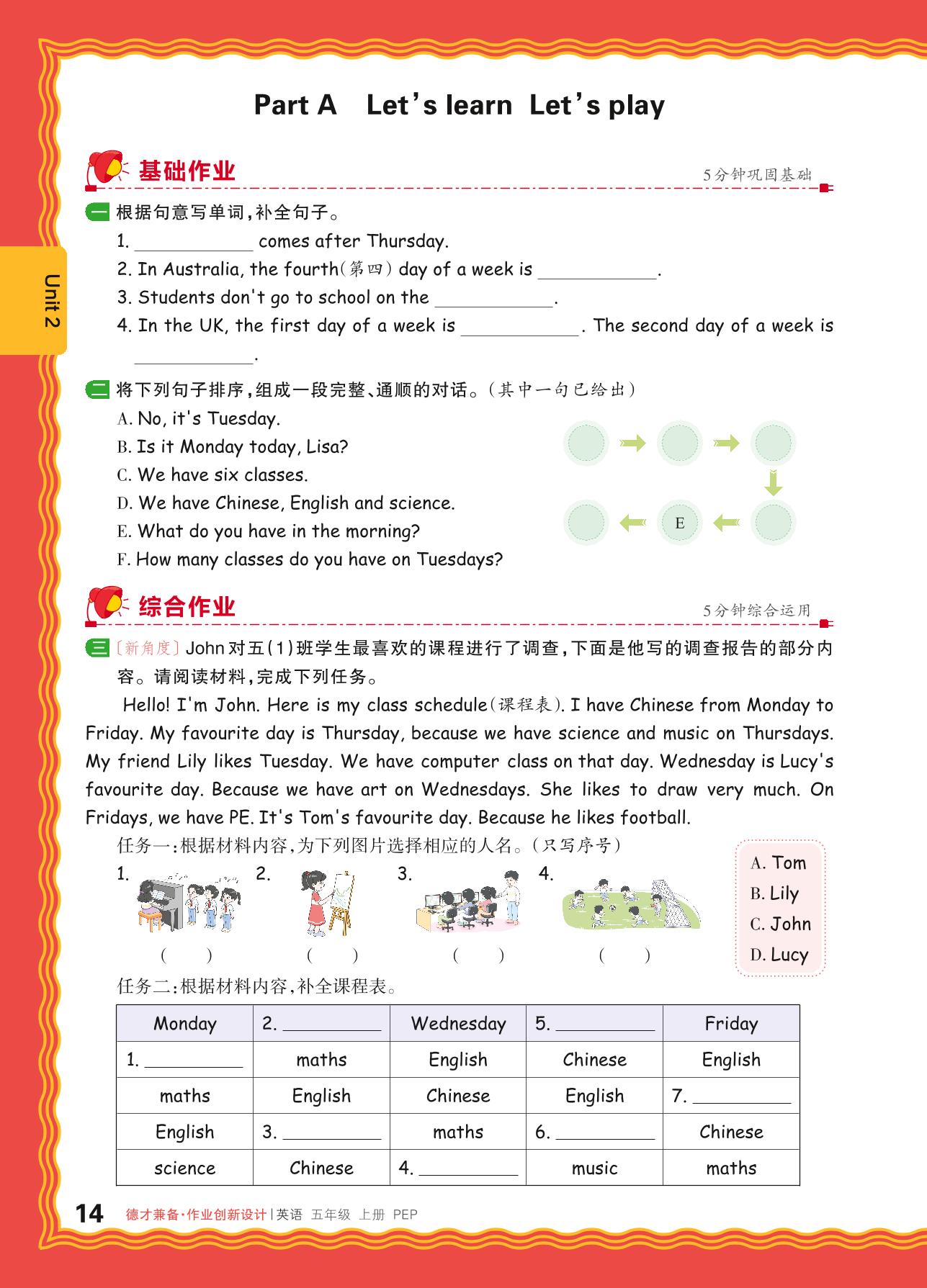 2024秋上册五年级英语人教PEP版(三起始) Unit 2—Part A Let’s learn Let’s play