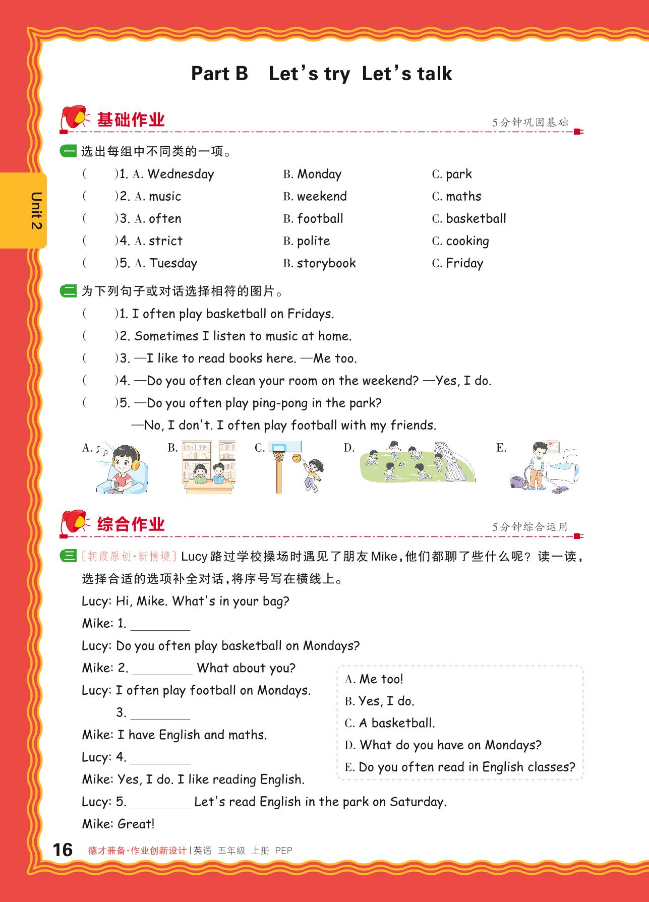 2024秋上册五年级英语人教PEP版(三起始) Unit 2—Part B Let’s try Let’s talk