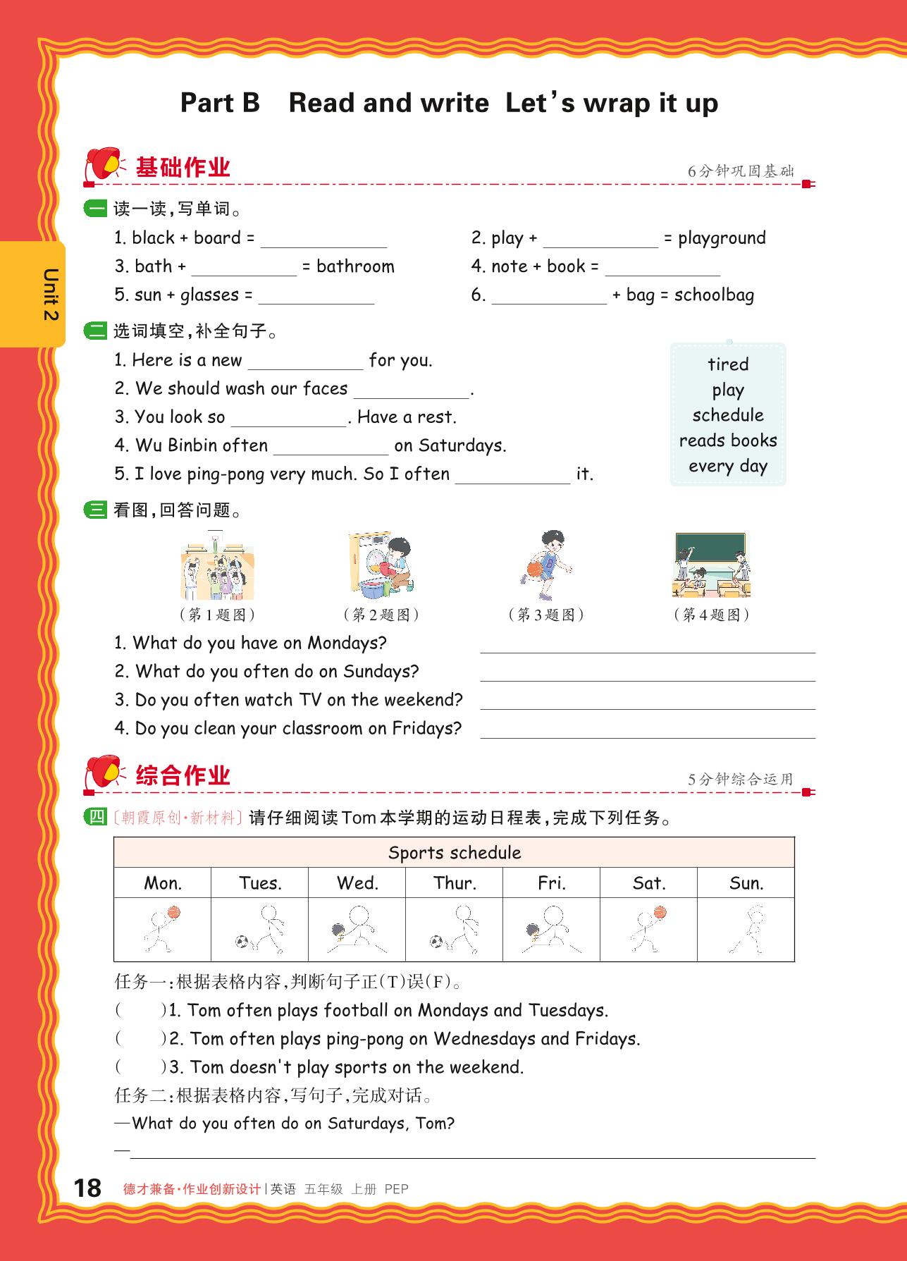2024秋上册五年级英语人教PEP版(三起始) Unit 2—Part B Read and write Let’s wrap it up