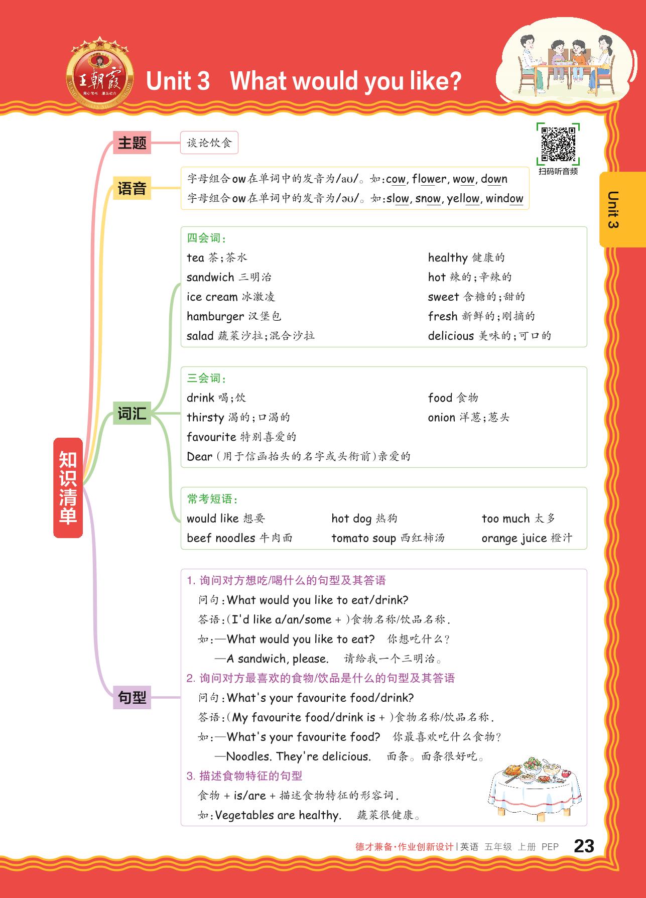 2024秋上册五年级英语人教PEP版(三起始) Unit 3 知识清单