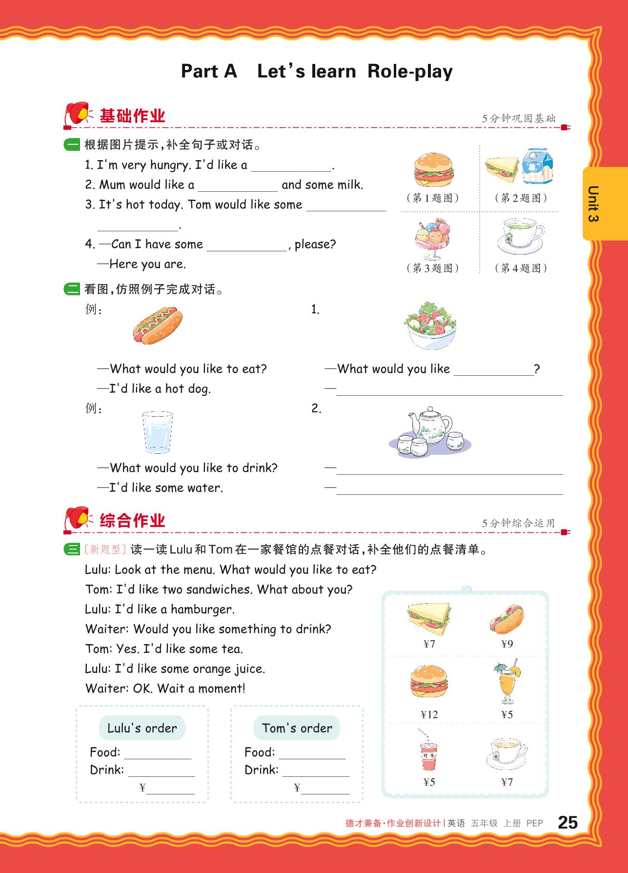 2024秋上册五年级英语人教PEP版(三起始) Unit 3—Part A Let’s learn Role-play