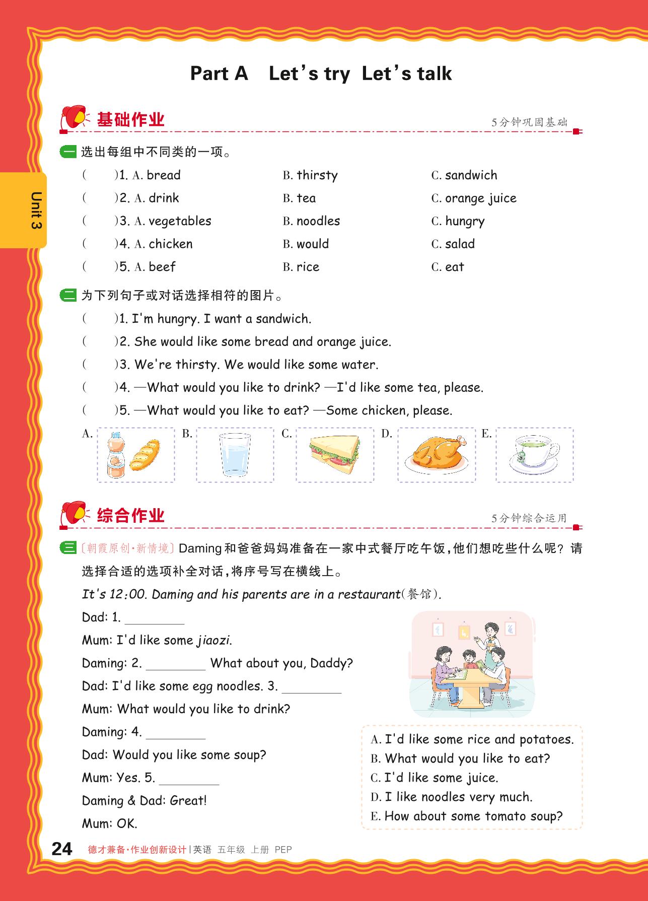 2024秋上册五年级英语人教PEP版(三起始) Unit 3—Part A Let’s try Let’s talk