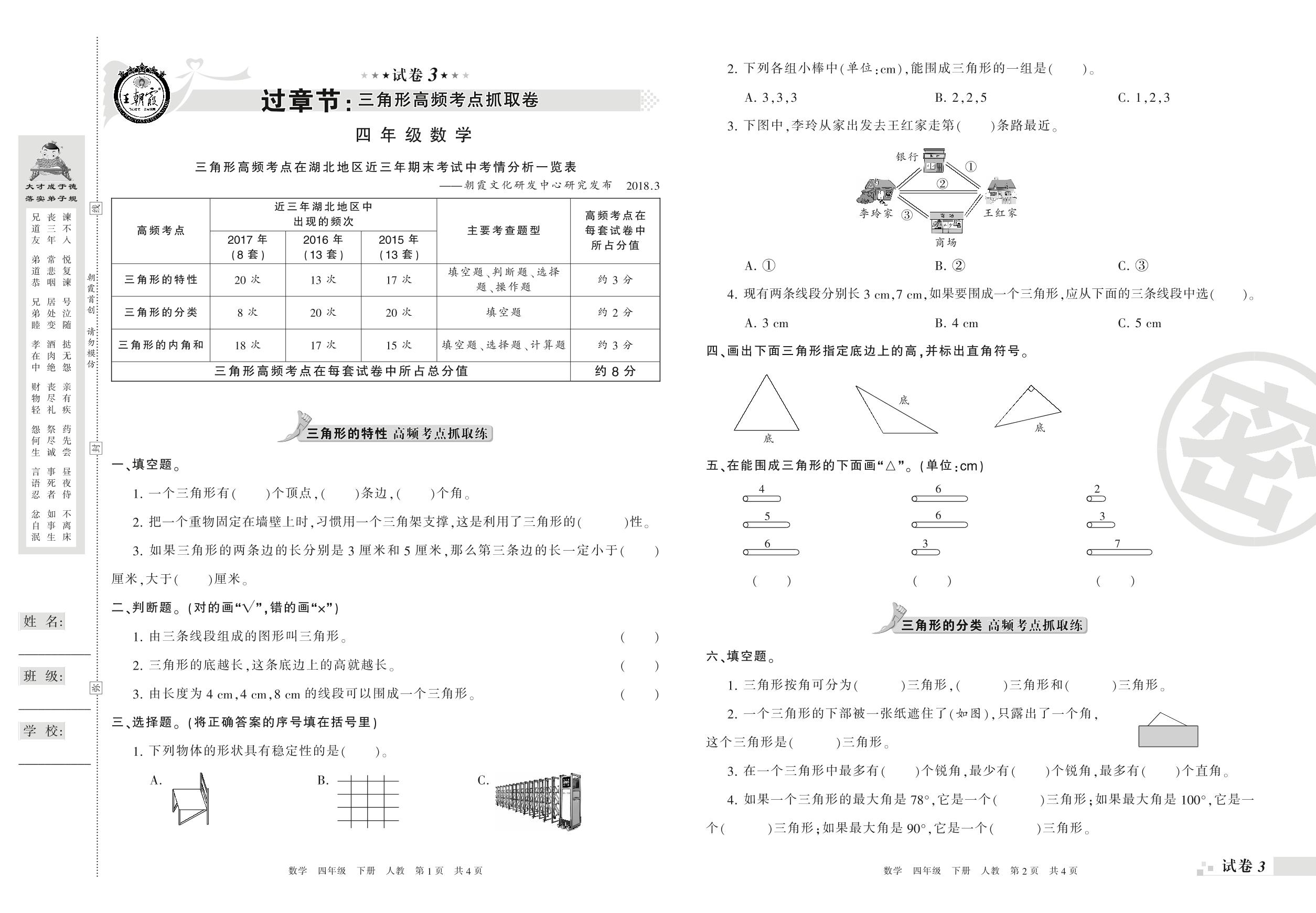 王朝霞期末过章节——三角形高频考点抓取卷四年级下册数学(人教版)_R210804160327【3】