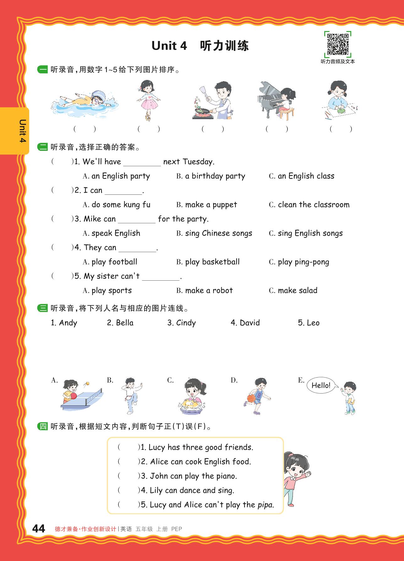 2024秋上册五年级英语人教PEP版(三起始) Unit 4 听力训练