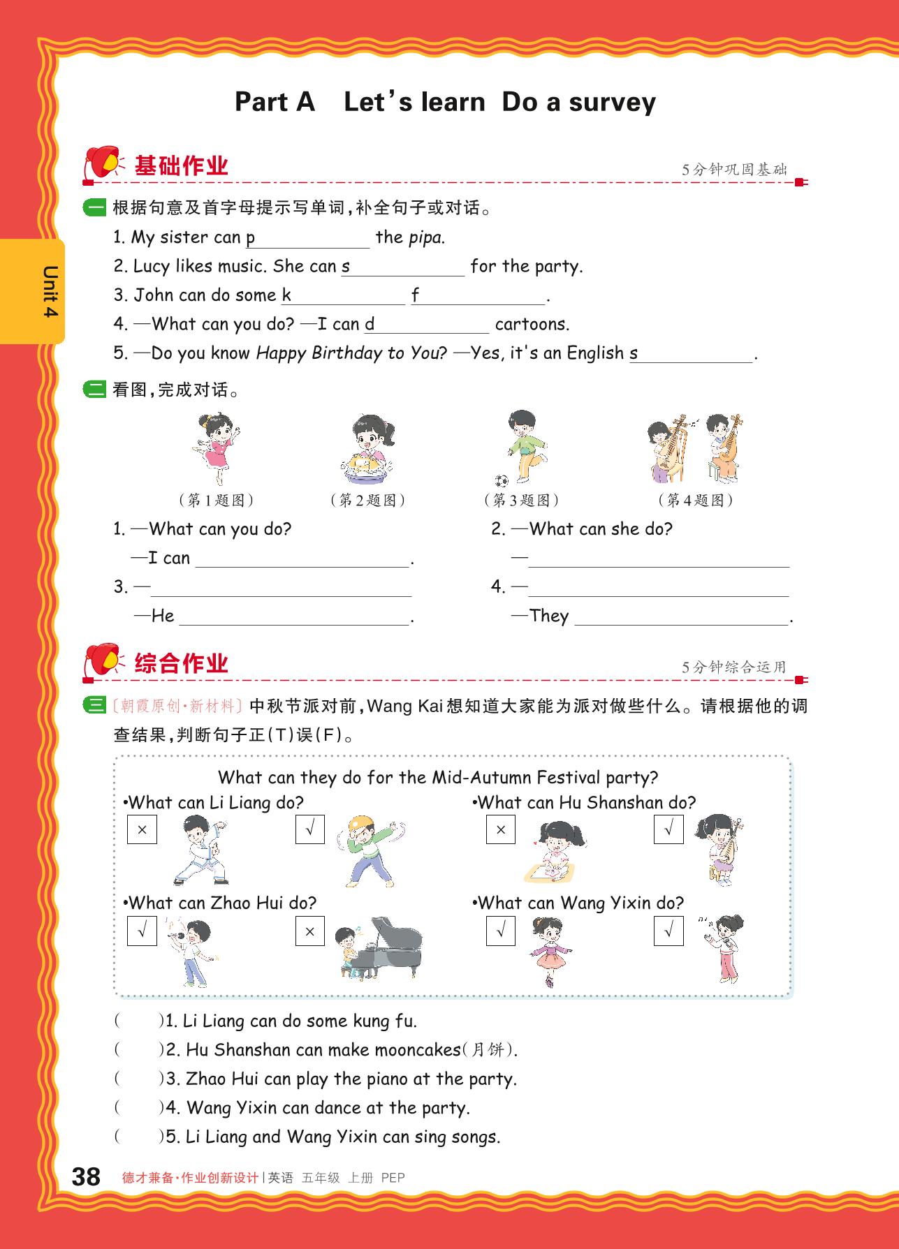 2024秋上册五年级英语人教PEP版(三起始) Unit 4—Part A Let’s learn Do a survey