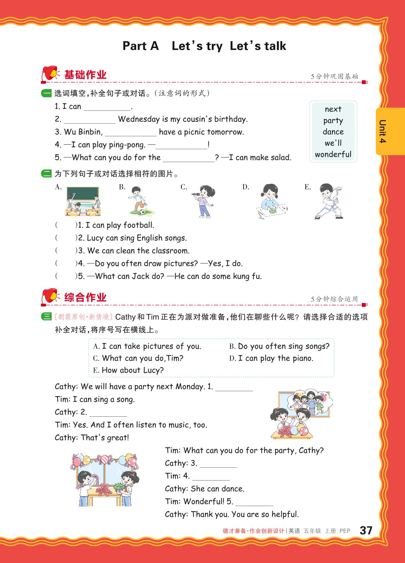 2024秋上册五年级英语人教PEP版(三起始) Unit 4—Part A Let’s try Let’s talk