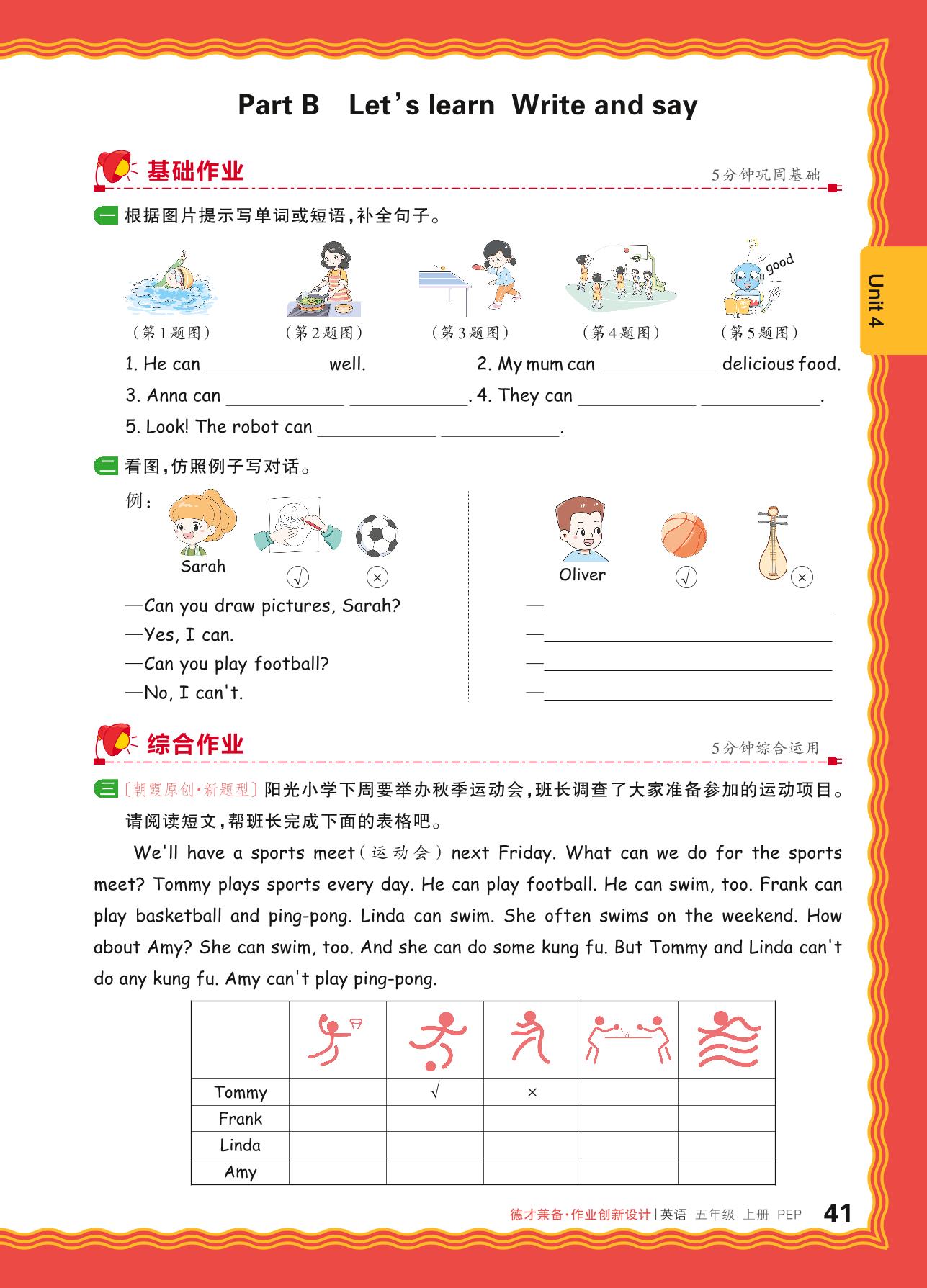 2024秋上册五年级英语人教PEP版(三起始) Unit 4—Part B Let’s learn Write and say
