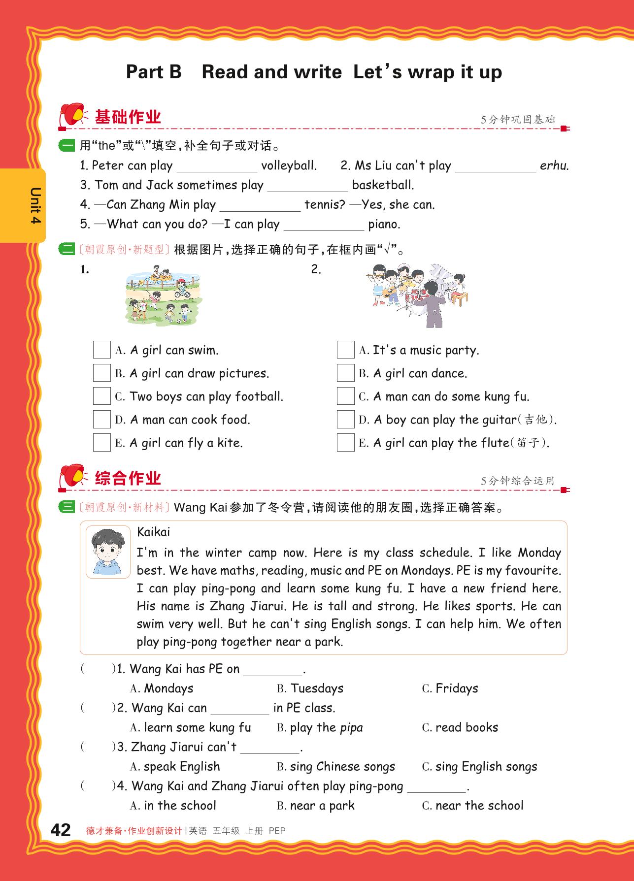 2024秋上册五年级英语人教PEP版(三起始) Unit 4—Part B Read and write Let’s wrap it up