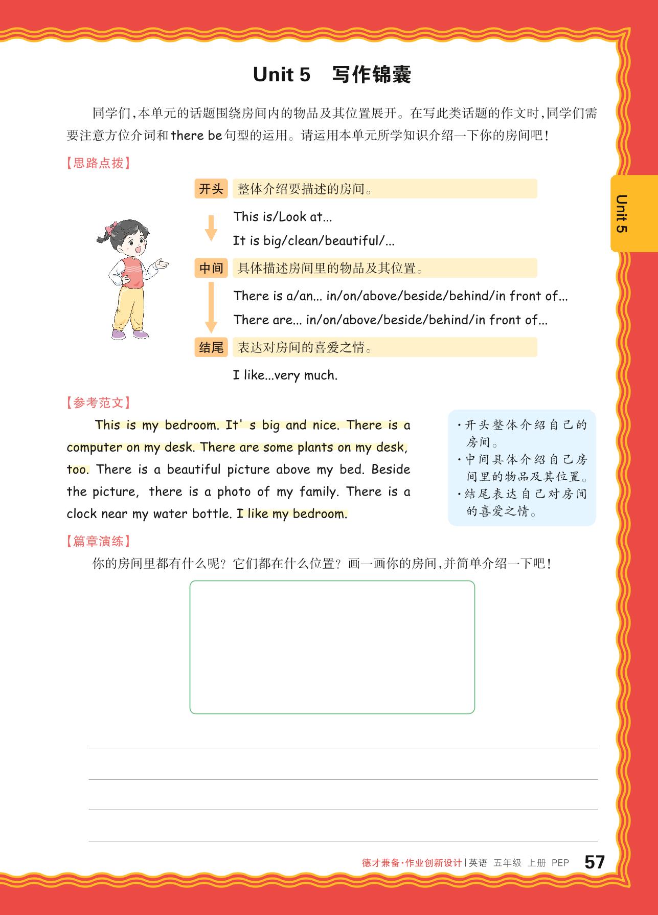 2024秋上册五年级英语人教PEP版(三起始) Unit 5 写作锦囊