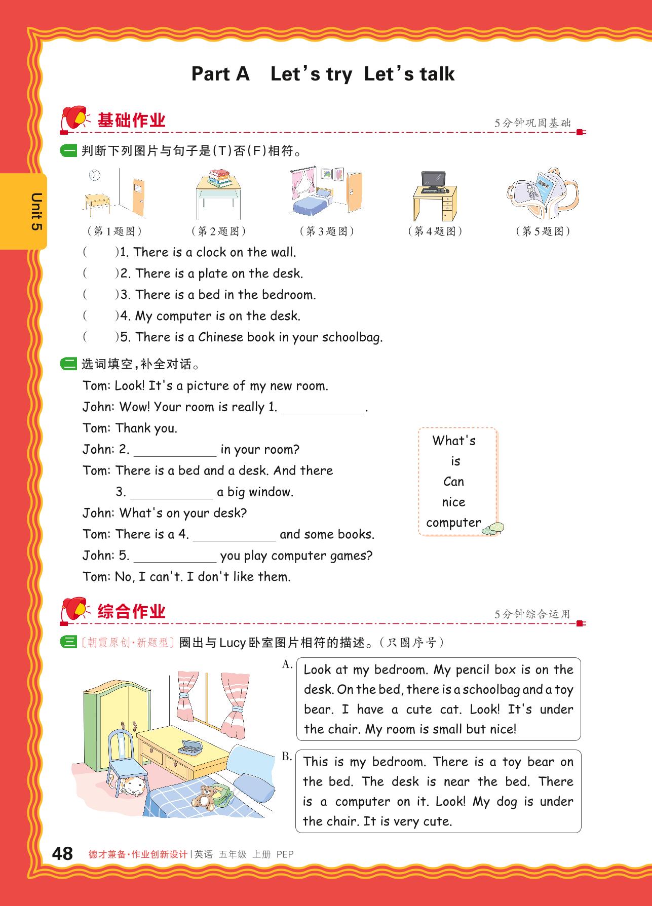 2024秋上册五年级英语人教PEP版(三起始) Unit 5—Part A Let’s try Let’s talk