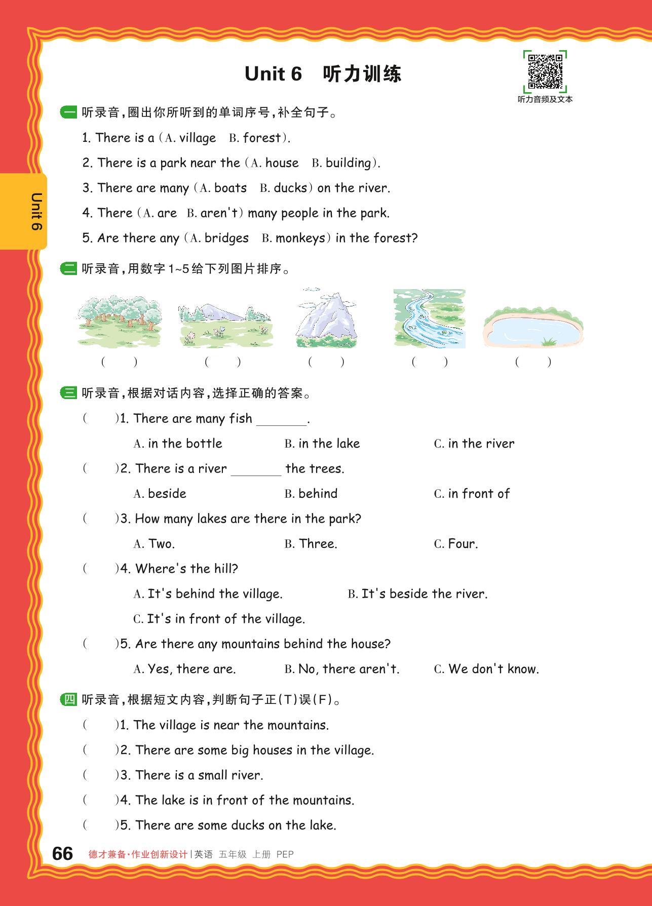 2024秋上册五年级英语人教PEP版(三起始) Unit 6 听力训练