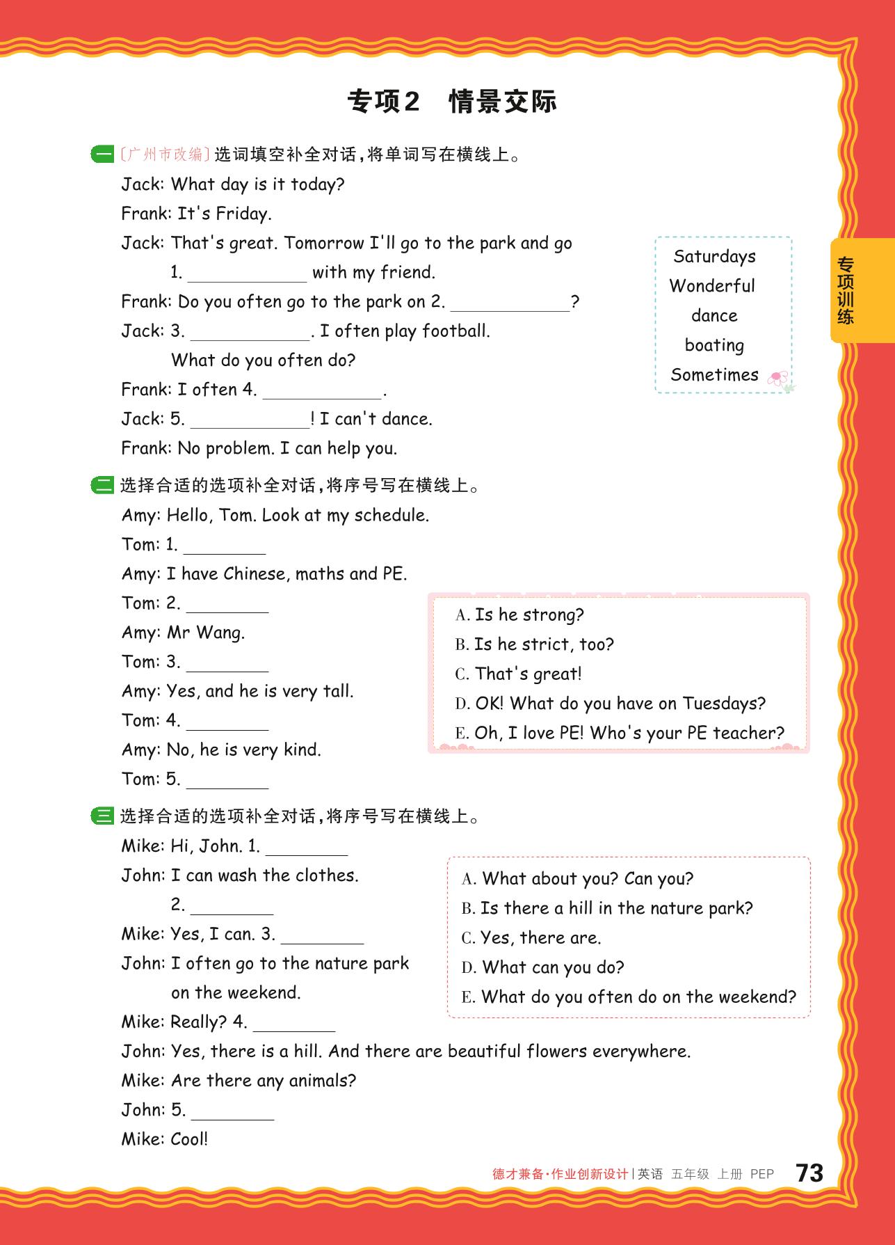 2024秋上册五年级英语人教PEP版(三起始) 期末专项卷DC版·情景交际【2】