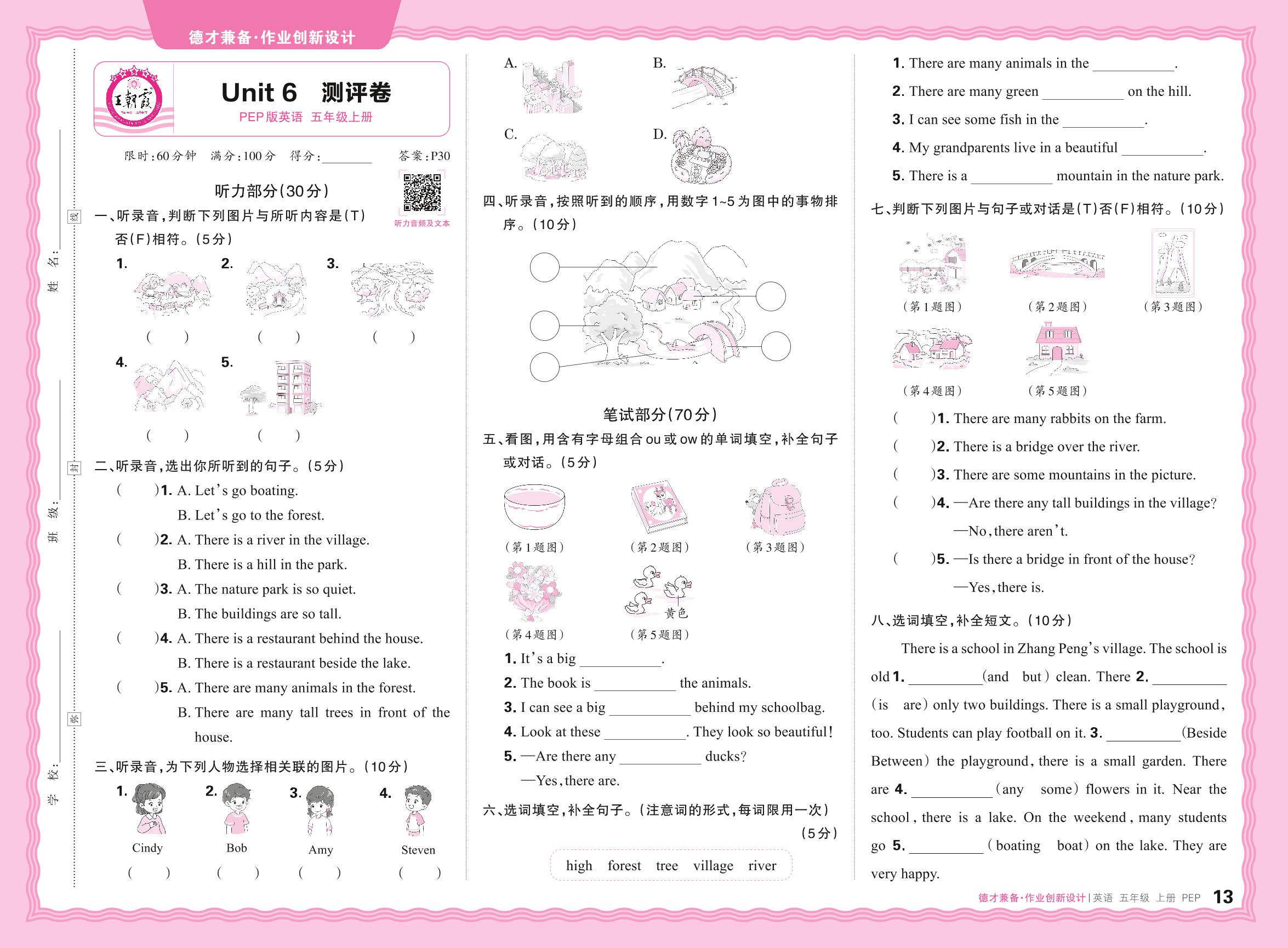 2024秋上册五年级英语人教PEP版(三起始) Unit 6 测评卷