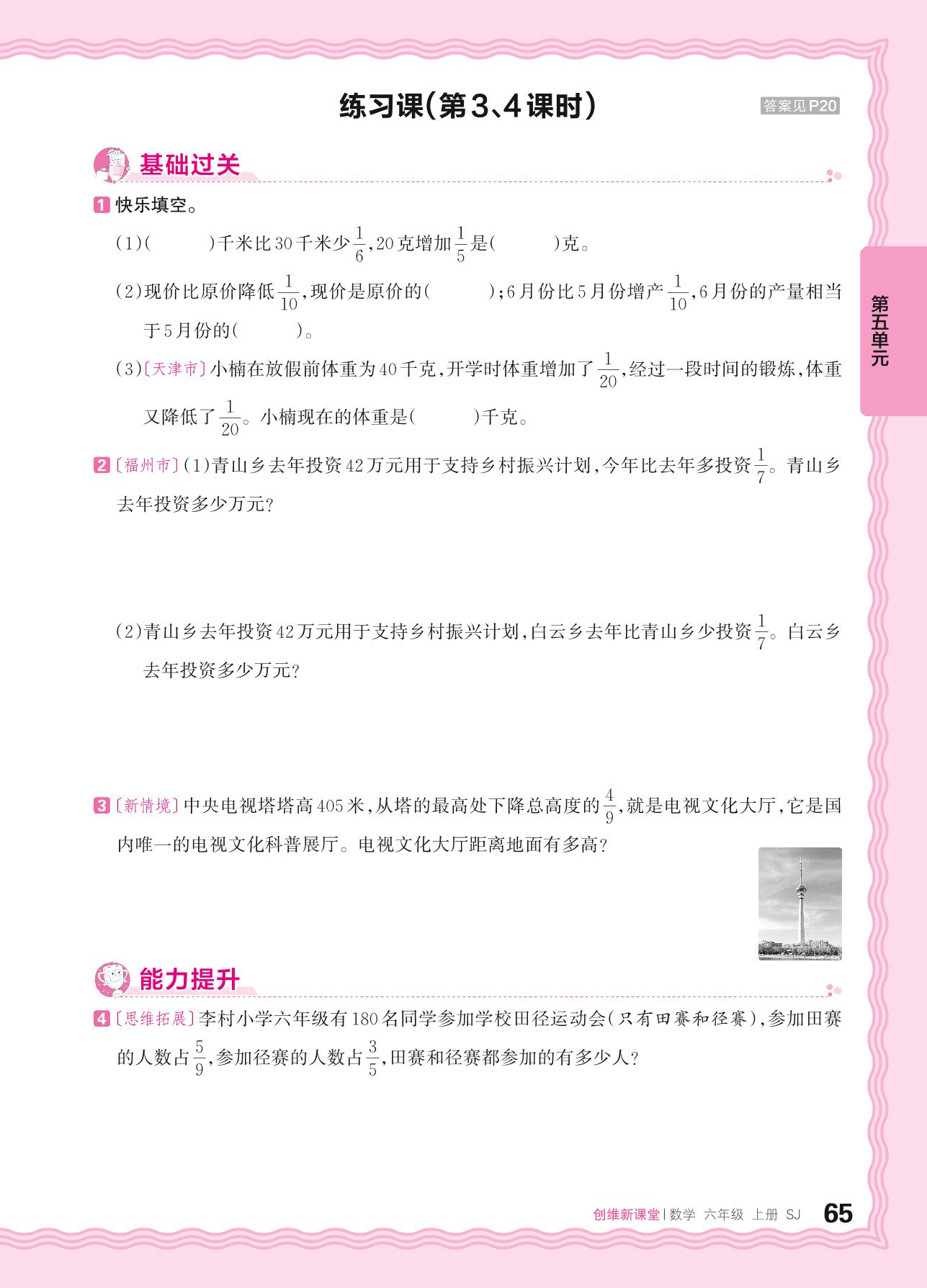 2024秋上册六年级数学苏教版 第五单元 分数四则混合运算——稍复杂的分数乘法实际问题练习课
