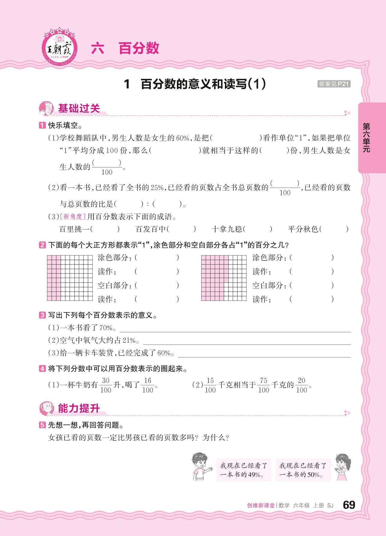 2024秋上册六年级数学苏教版 第六单元 百分数——1. 百分数的意义和读写(1)