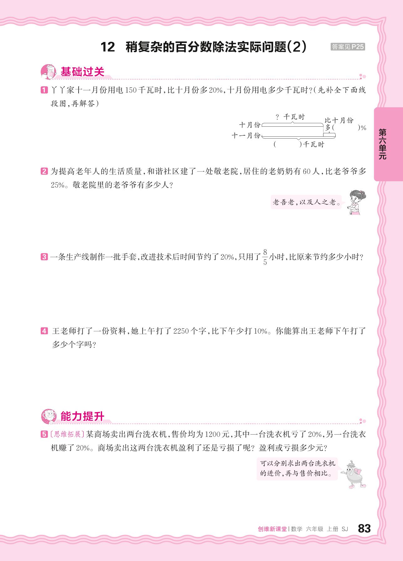 2024秋上册六年级数学苏教版 第六单元 百分数——12. 稍复杂的百分数除法实际问题(2)