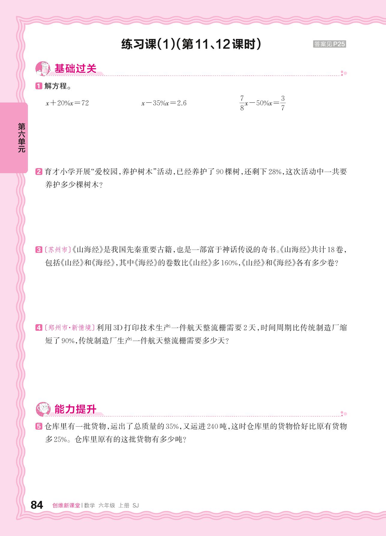 2024秋上册六年级数学苏教版 第六单元 百分数——稍复杂的百分数除法实际问题练习课(1)