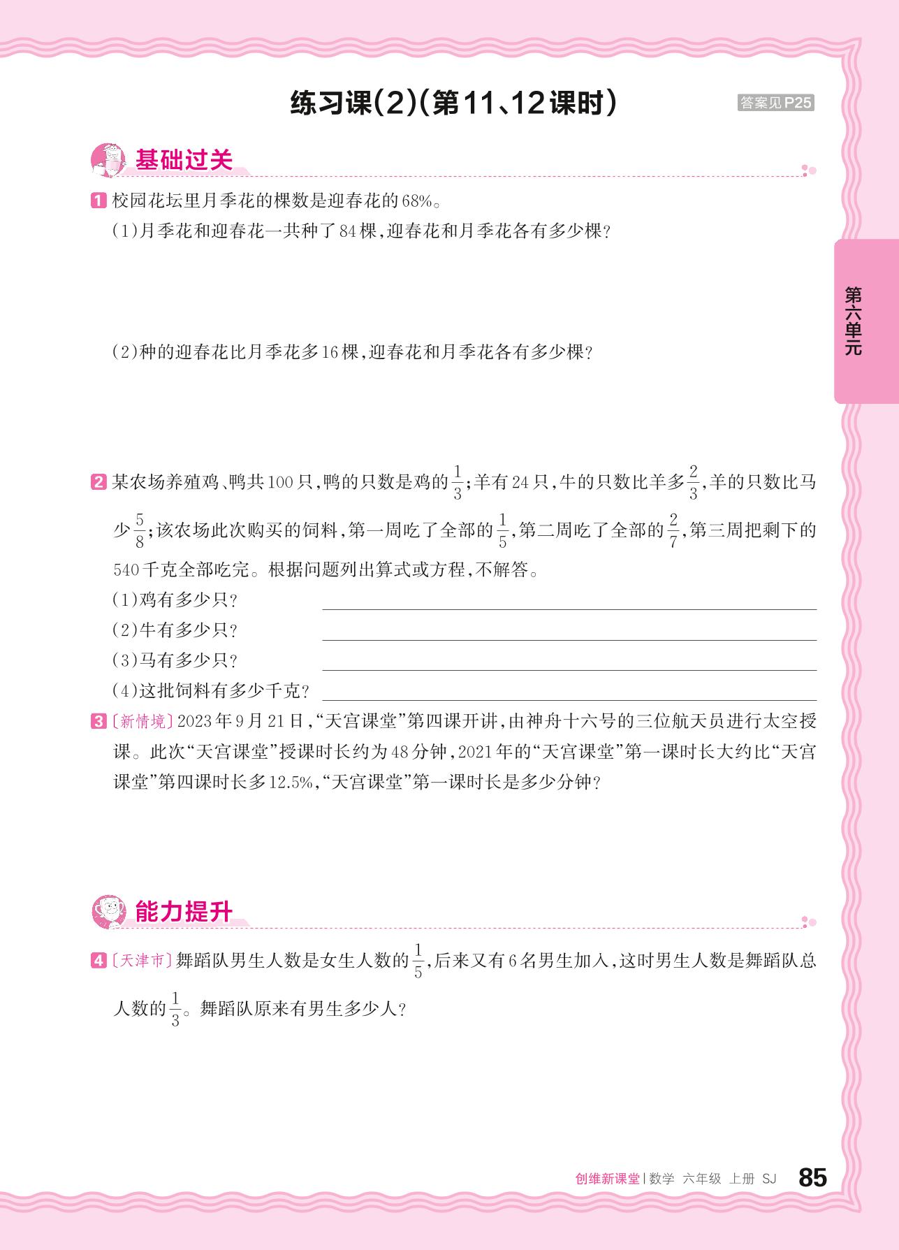 2024秋上册六年级数学苏教版 第六单元 百分数——稍复杂的百分数除法实际问题练习课(2)