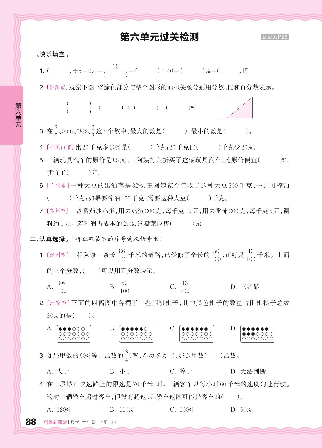 2024秋上册六年级数学苏教版 第六单元过关检测