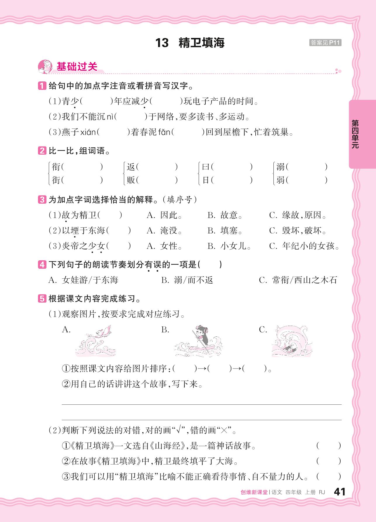 2024秋上册四年级语文人教版 第四单元 神话故事——13. 精卫填海