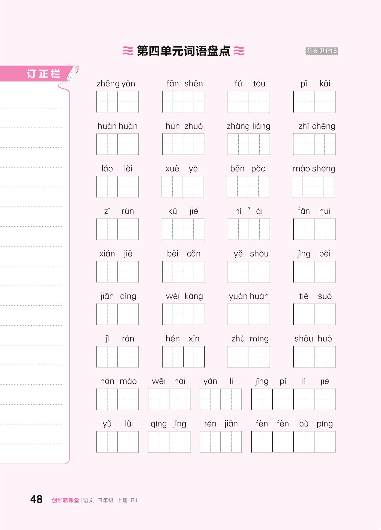 2024秋上册四年级语文人教版 第四单元词语盘点