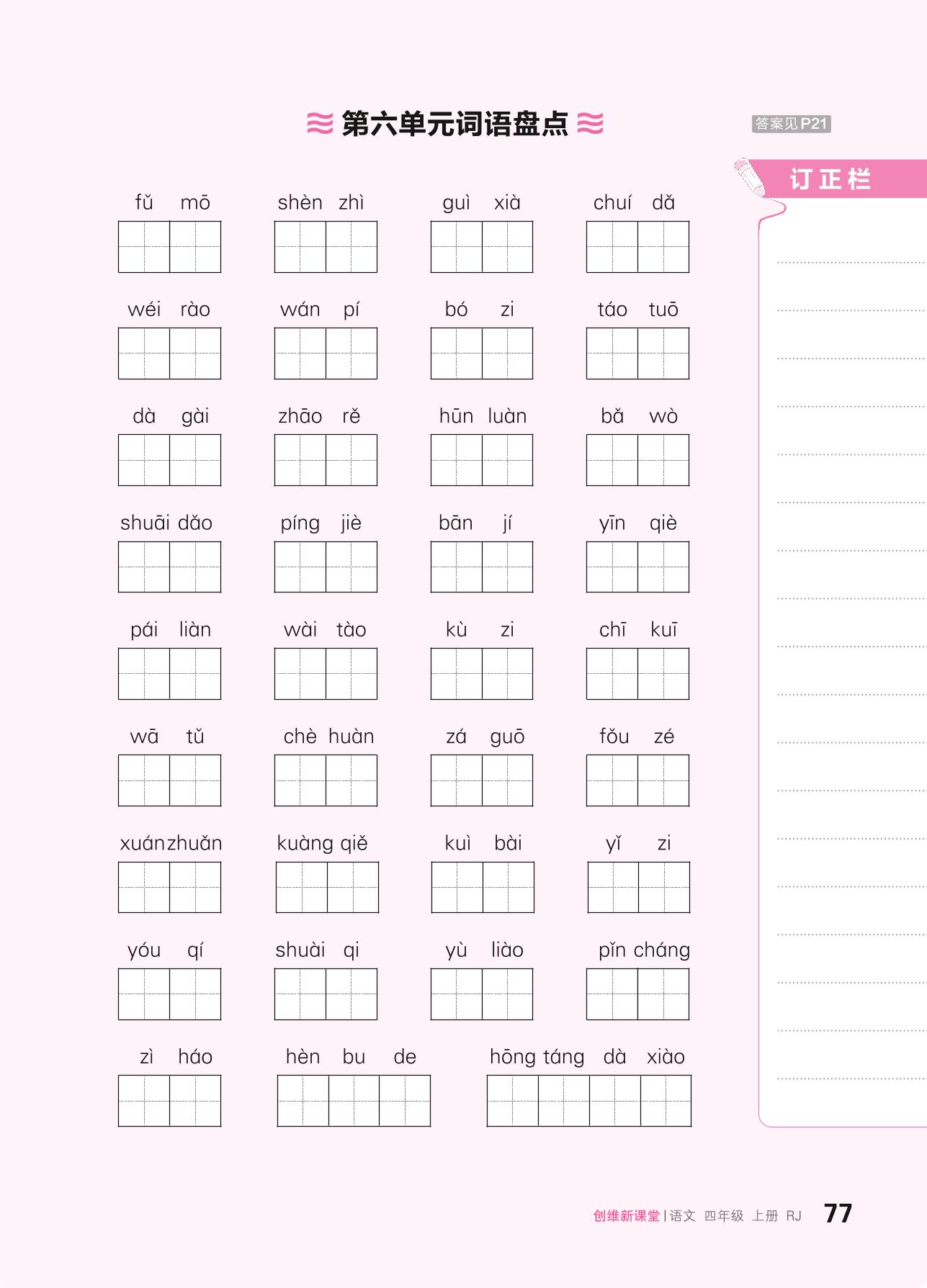 2024秋上册四年级语文人教版 第六单元词语盘点