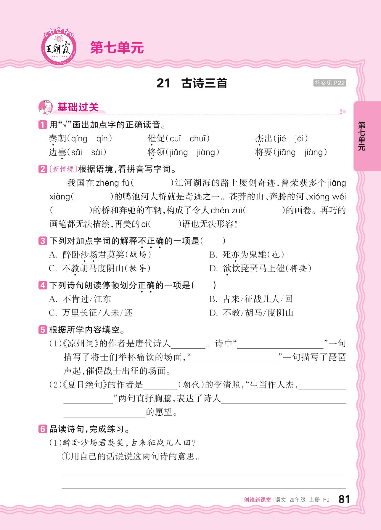 2024秋上册四年级语文人教版 第七单元 家国情怀——21. 古诗三首