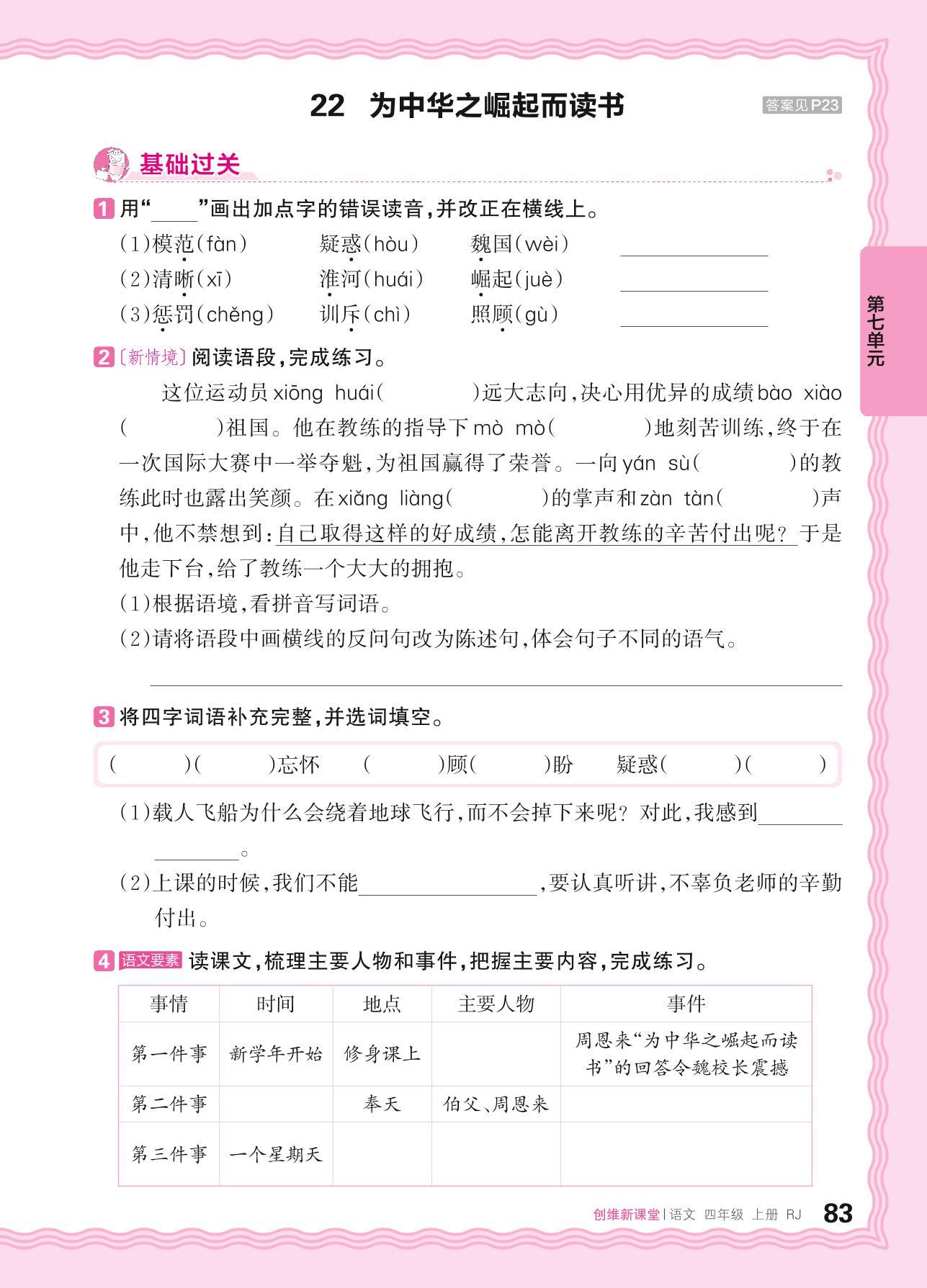 2024秋上册四年级语文人教版 第七单元 家国情怀——22. 为中华之崛起而读书