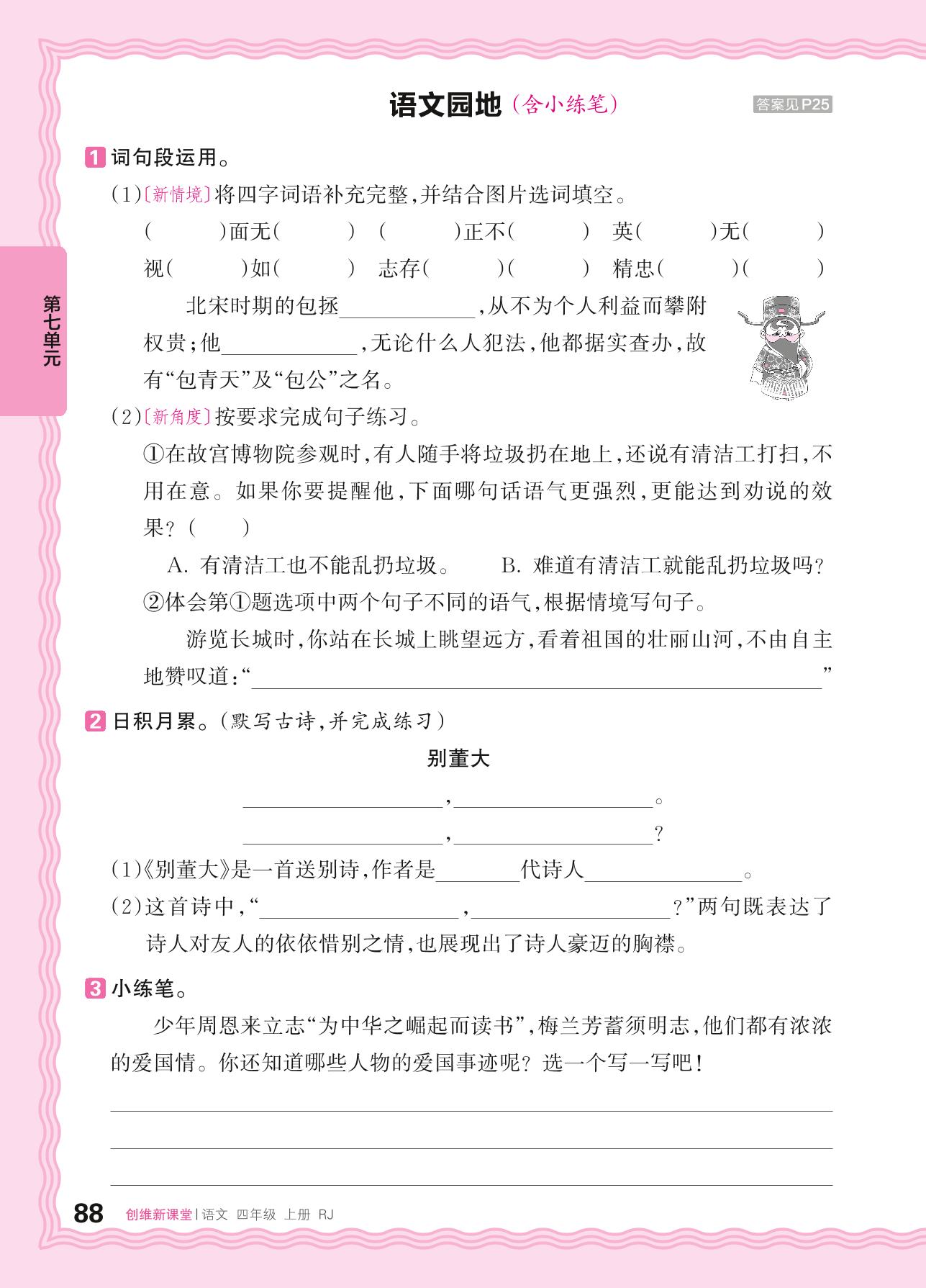 2024秋上册四年级语文人教版 第七单元 家国情怀——语文园地(含小练笔)