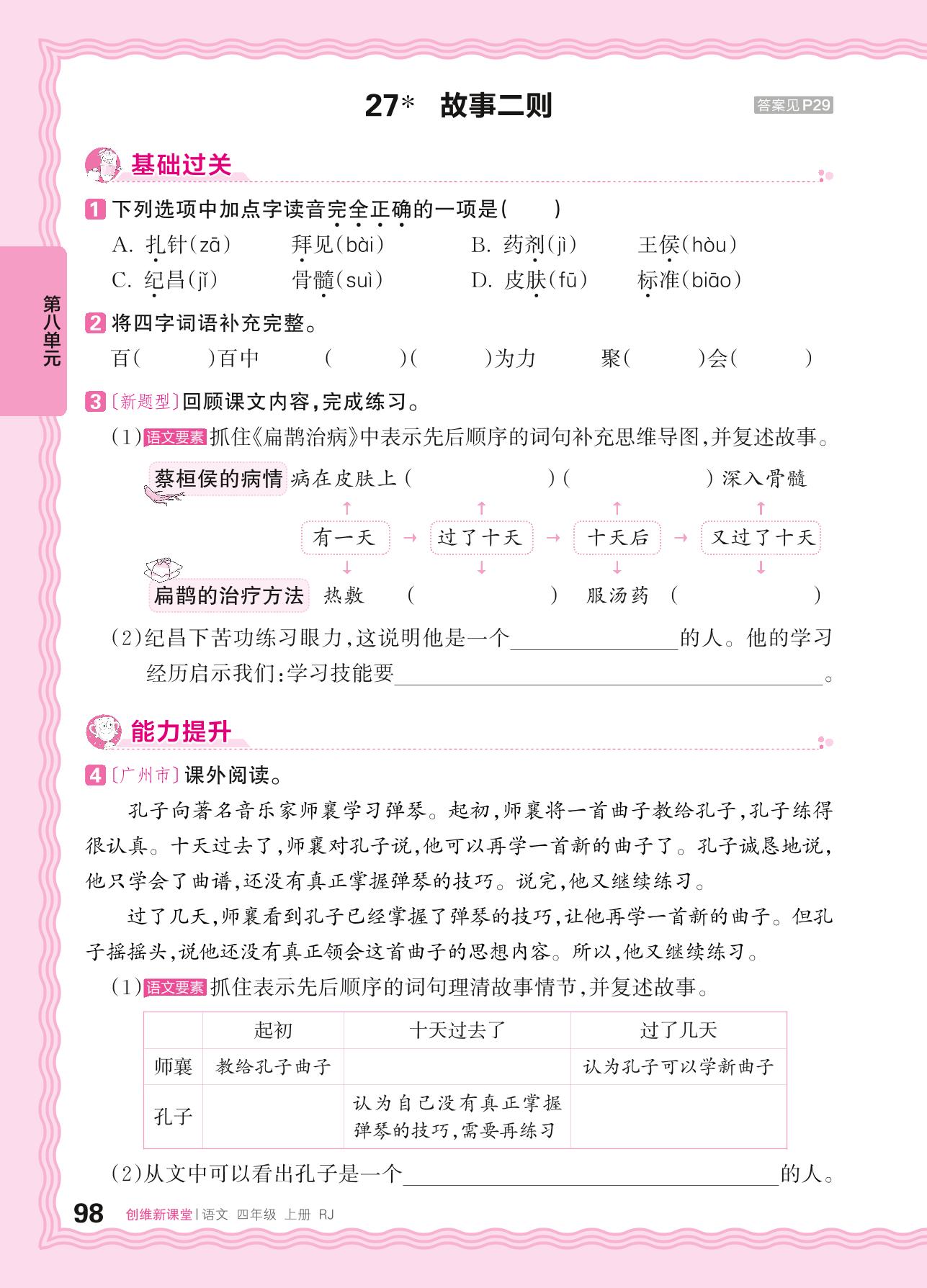 2024秋上册四年级语文人教版 第八单元 历史传说故事——27. 故事二则