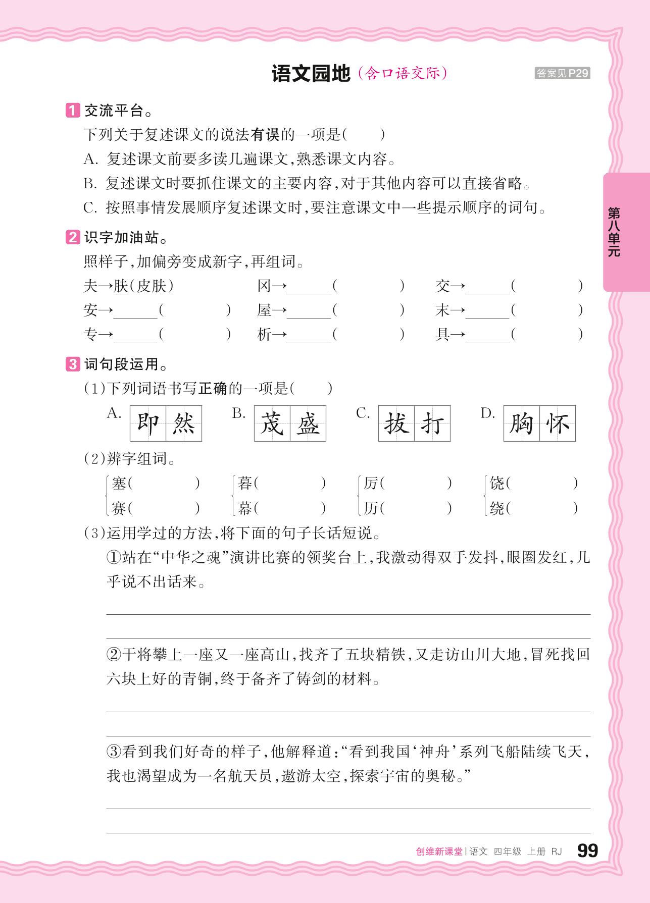 2024秋上册四年级语文人教版 第八单元 历史传说故事——语文园地(含口语交际)