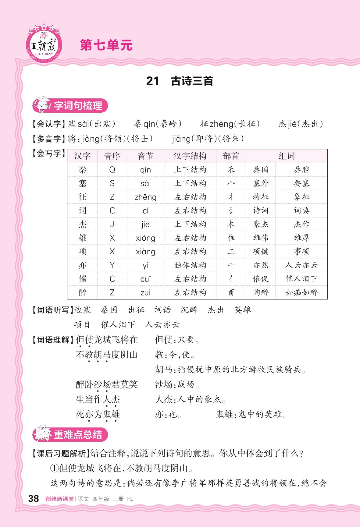 2024秋上册四年级语文人教版 助学手册 第七单元——21. 古诗三首