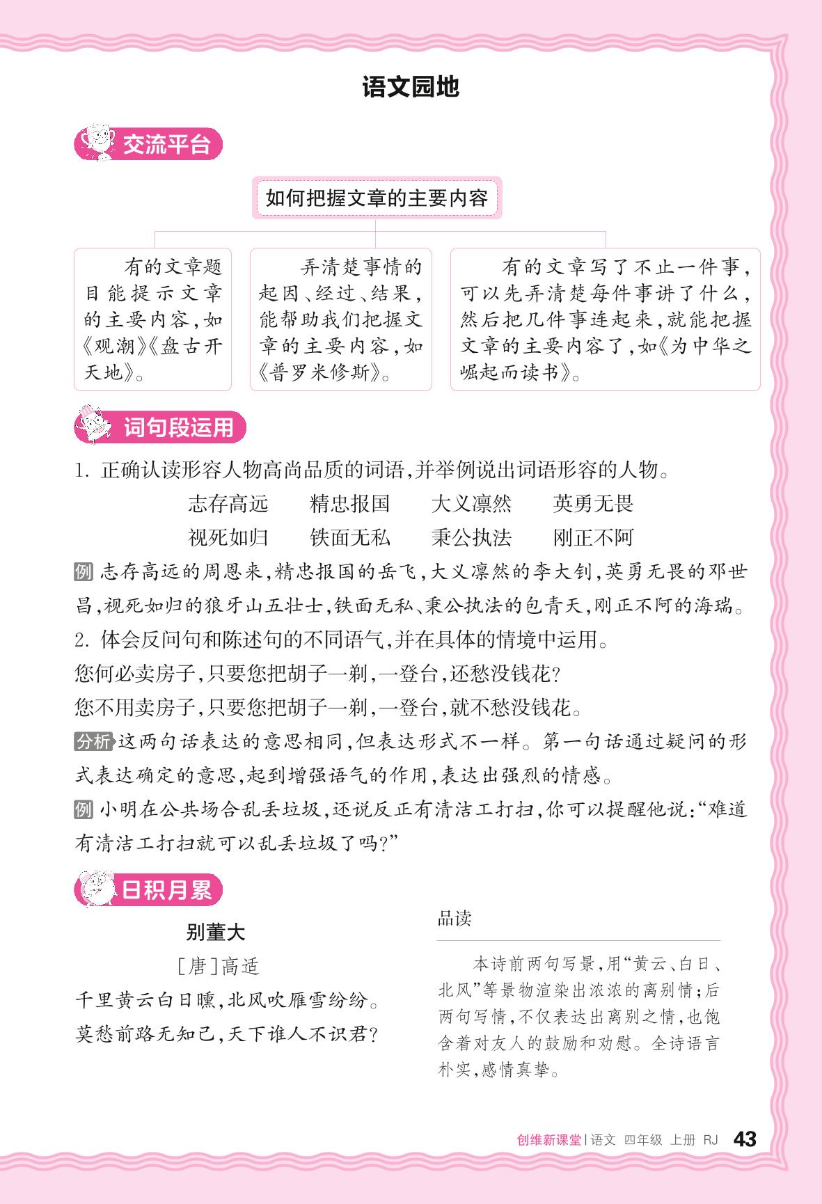 2024秋上册四年级语文人教版 助学手册 第七单元——语文园地