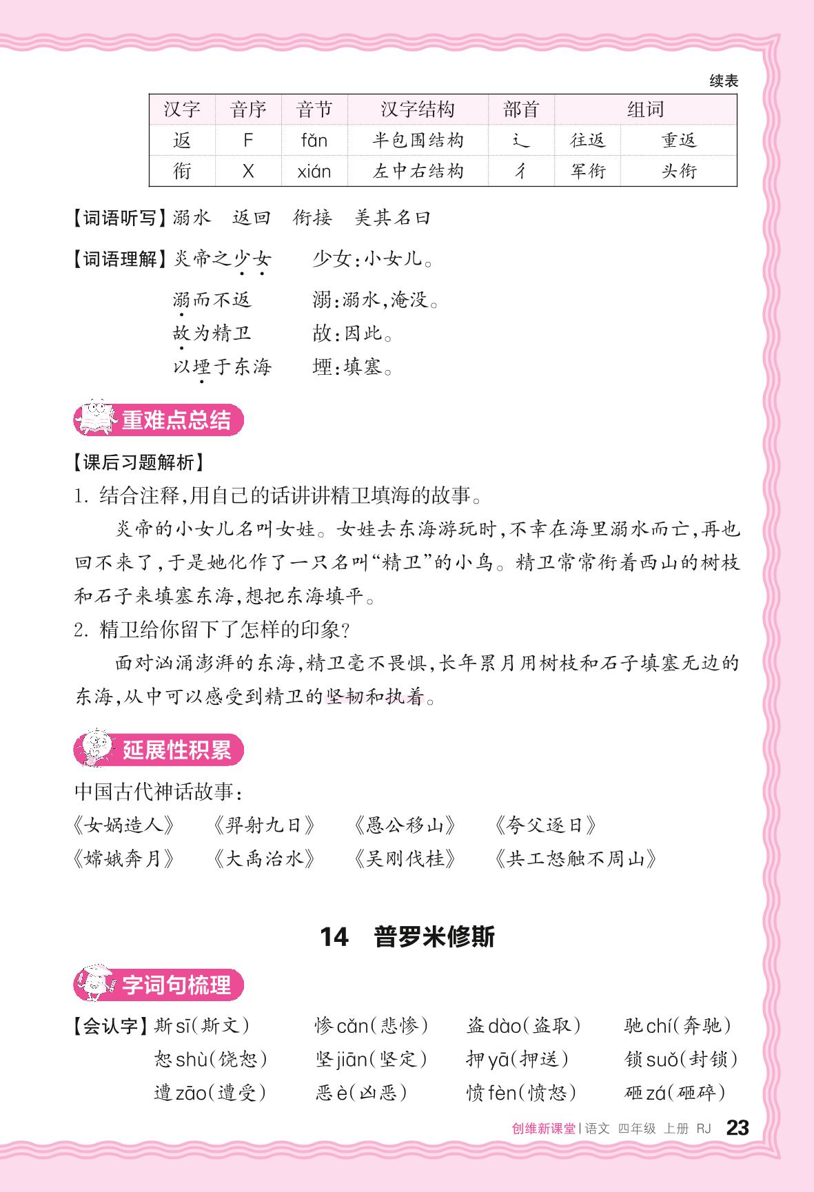 2024秋上册四年级语文人教版 助学手册 第四单元——14. 普罗米修斯