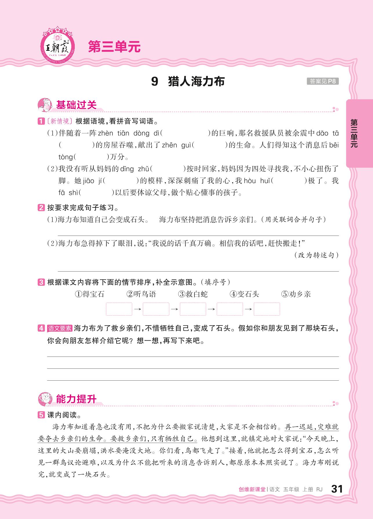 2024秋上册五年级语文人教版 第三单元 民间故事——9. 猎人海力布