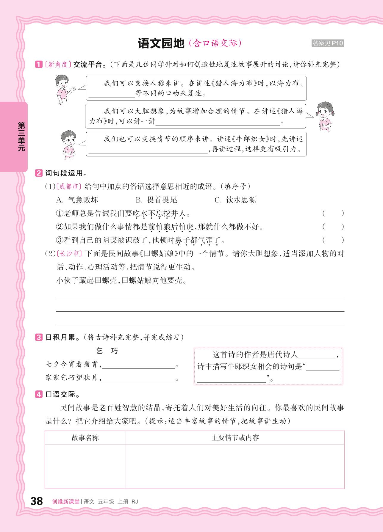 2024秋上册五年级语文人教版 第三单元 民间故事——语文园地(含口语交际)