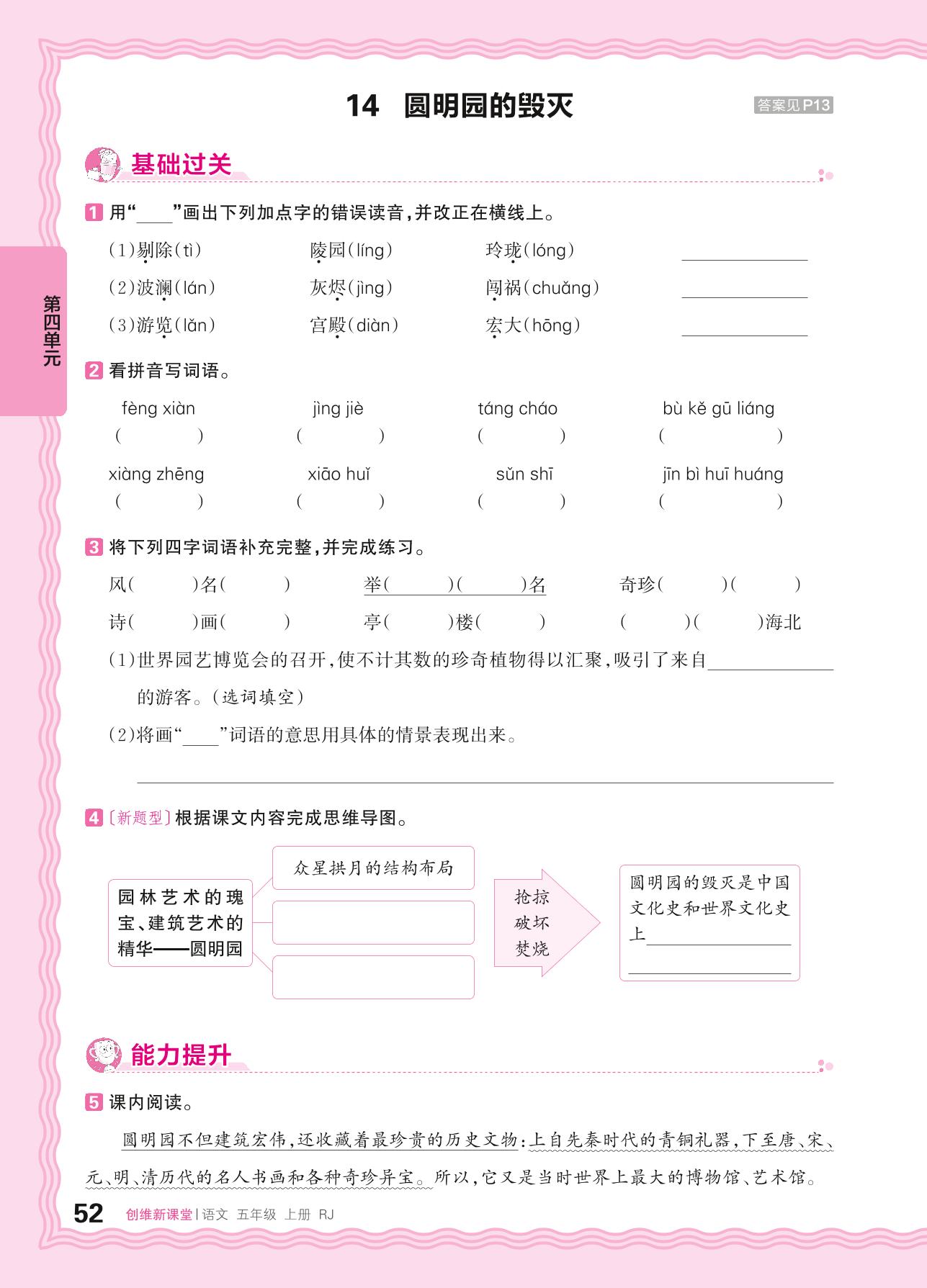 2024秋上册五年级语文人教版 第四单元 爱国情怀——14. 圆明园的毁灭