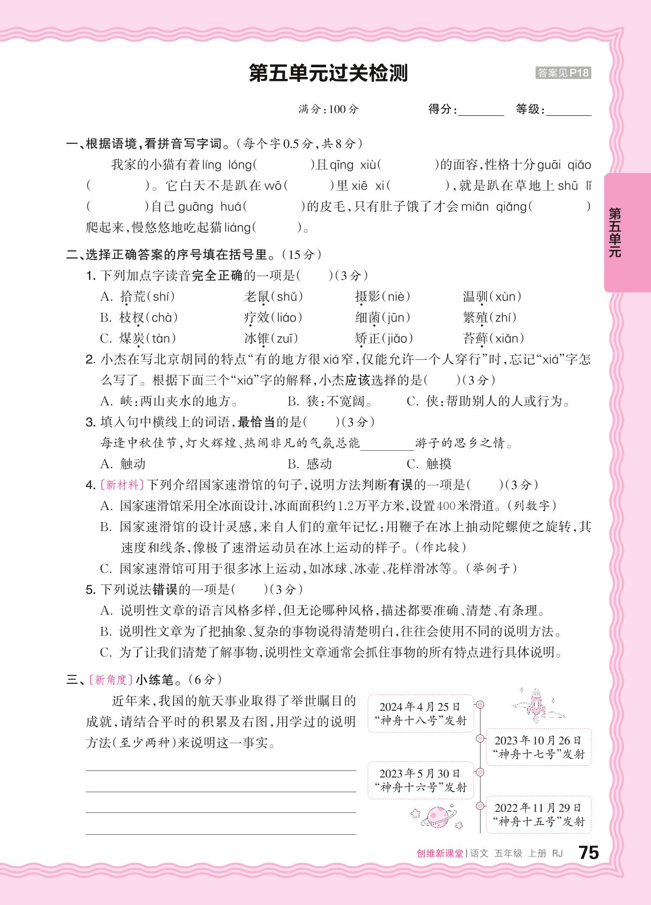 五年级语文人教版上册单元卷