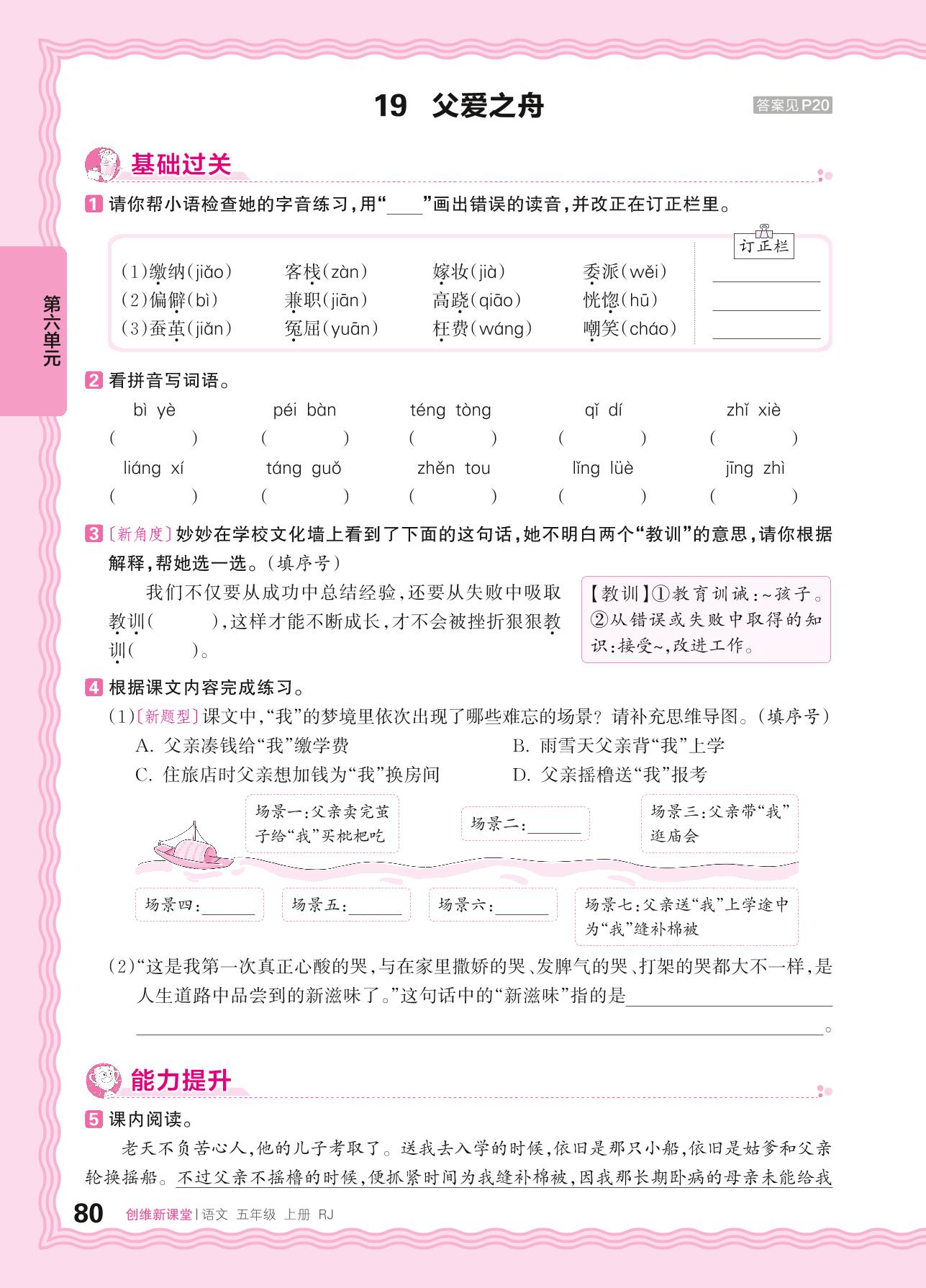 2024秋上册五年级语文人教版 第六单元 舐犊情深——19. 父爱之舟