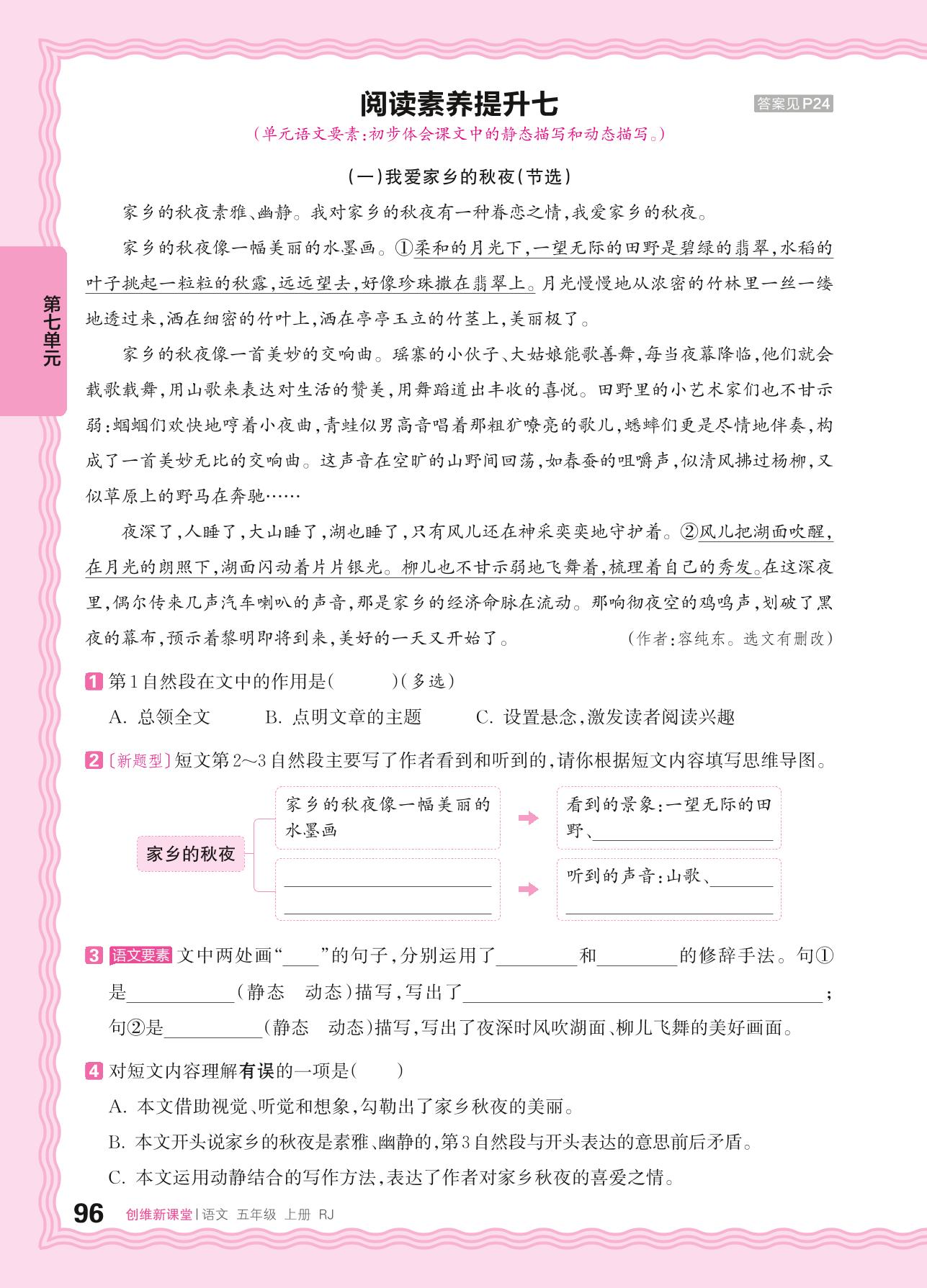 2024秋上册五年级语文人教版 第七单元 自然之趣——阅读素养提升七