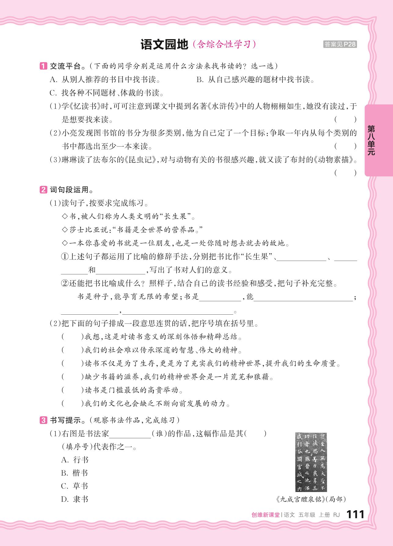 2024秋上册五年级语文人教版 第八单元 读书明智——语文园地(含综合性学习)