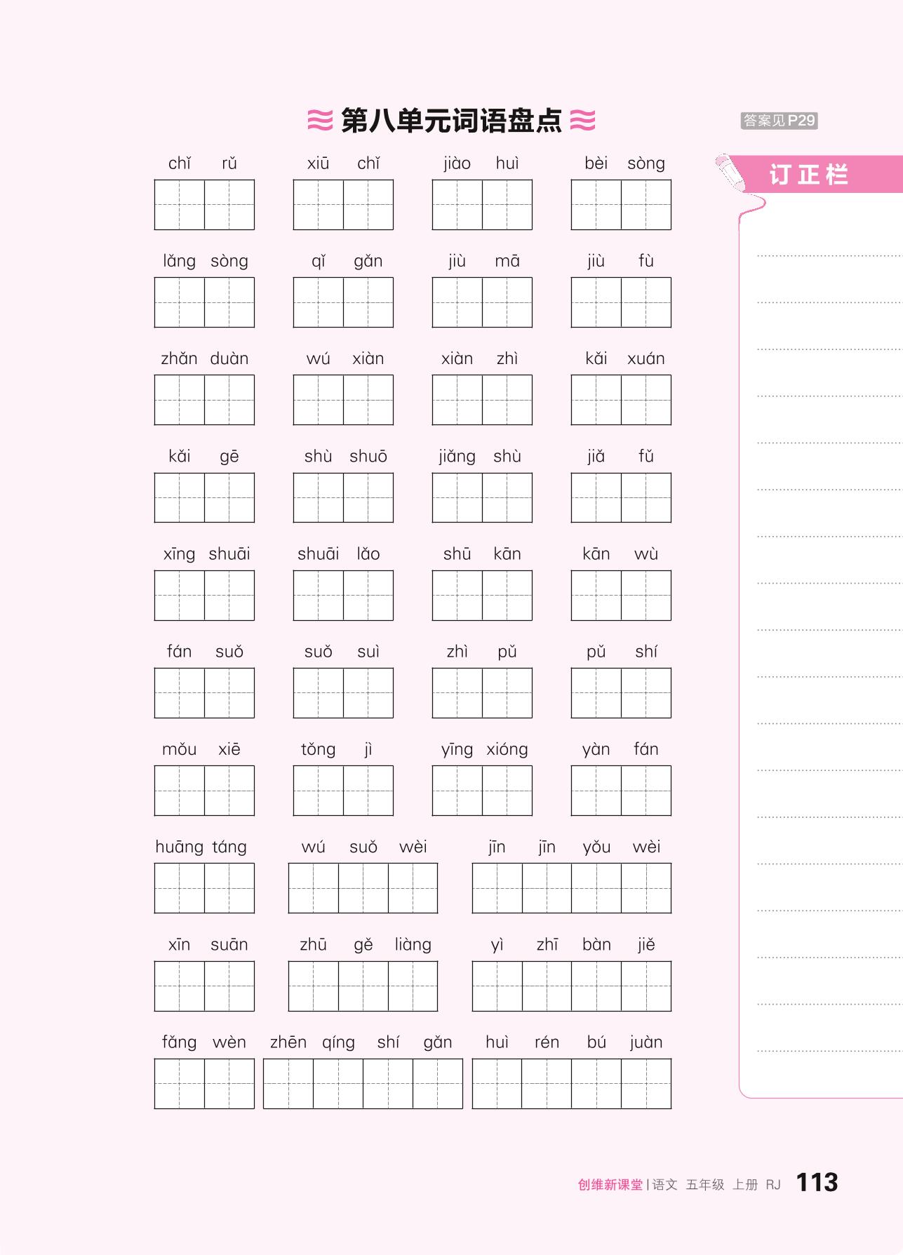 2024秋上册五年级语文人教版 第八单元词语盘点