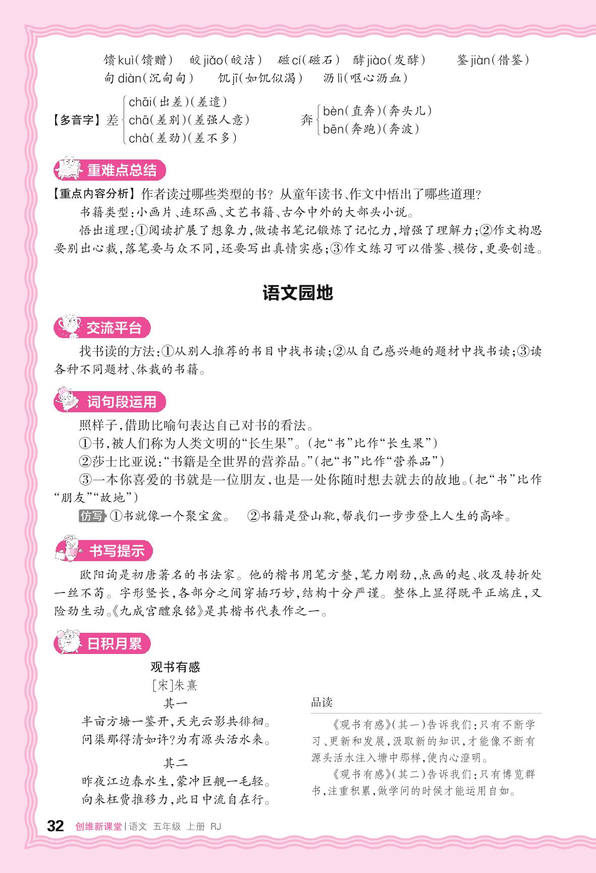 2024秋上册五年级语文人教版 助学手册 第八单元——语文园地